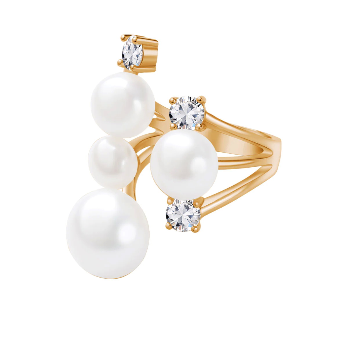 Avatud sõrmus, kullatud hõbe looduslike pärlitega