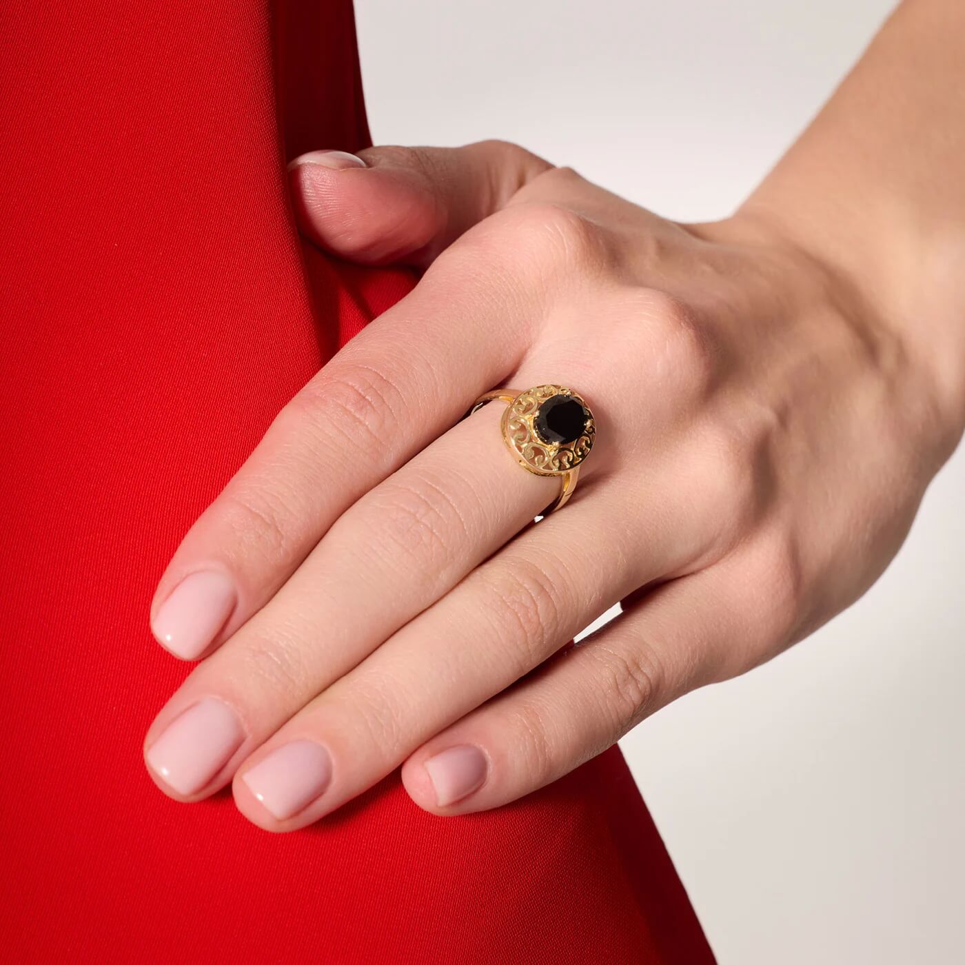 Ažuurne sõrmus musta tsirkooniga kullast 333