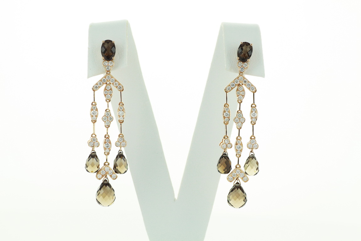 Ehted | kõrvarõngad kollasest kullast 750 suitsukvartsi ja teemantitega