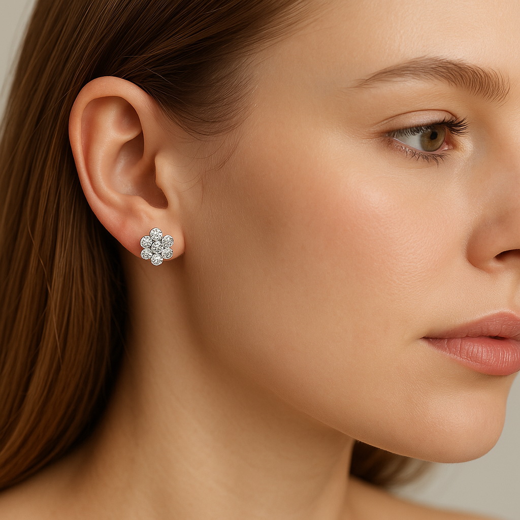 Roosakuldse kattega hõbedased kõrvarõngad tsirkoonidega
