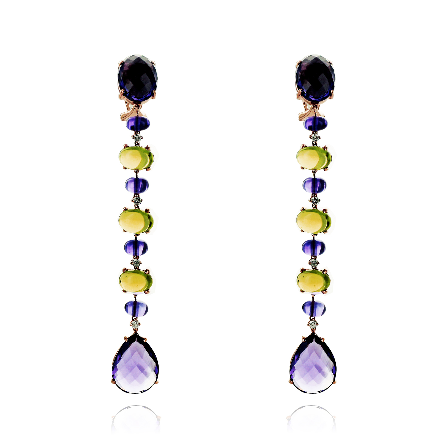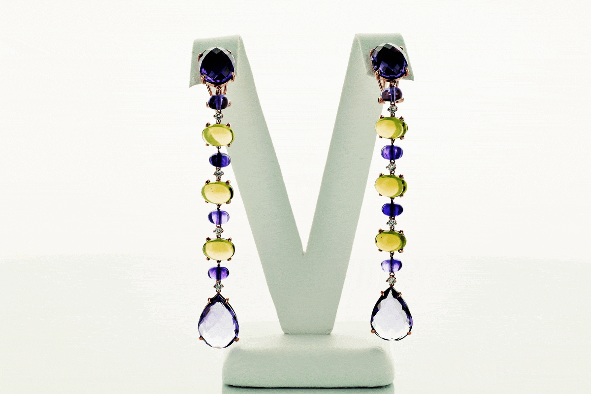 Ehted | roosast kullast kõrvarõngad ametüsti ja peridootiga