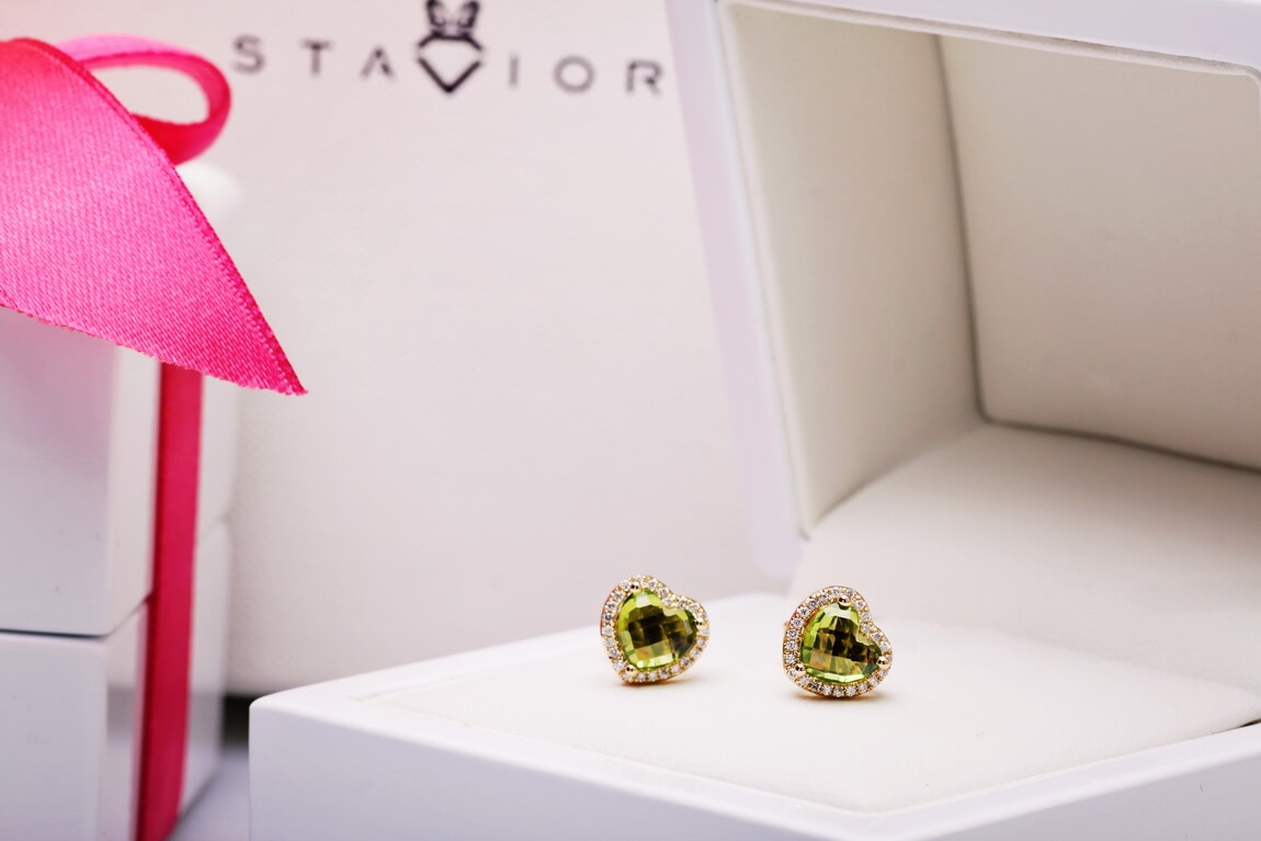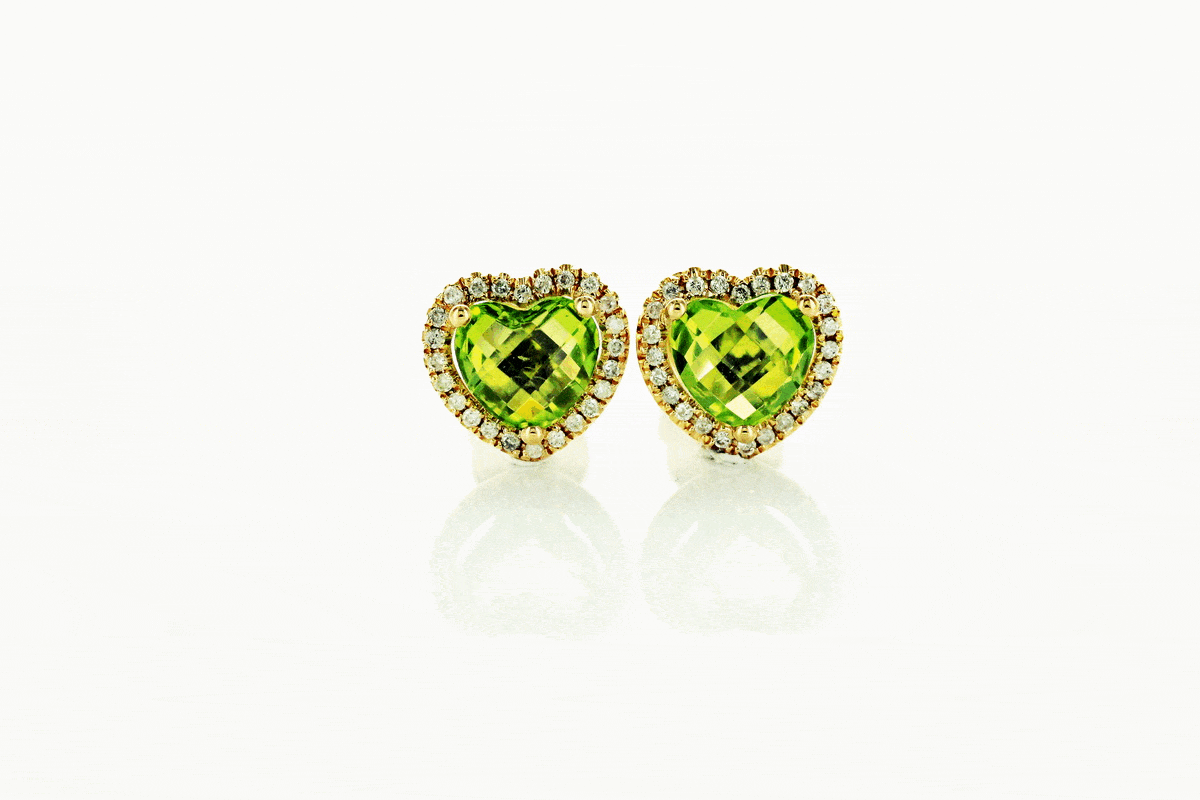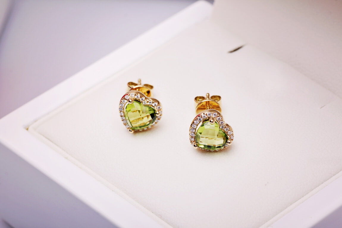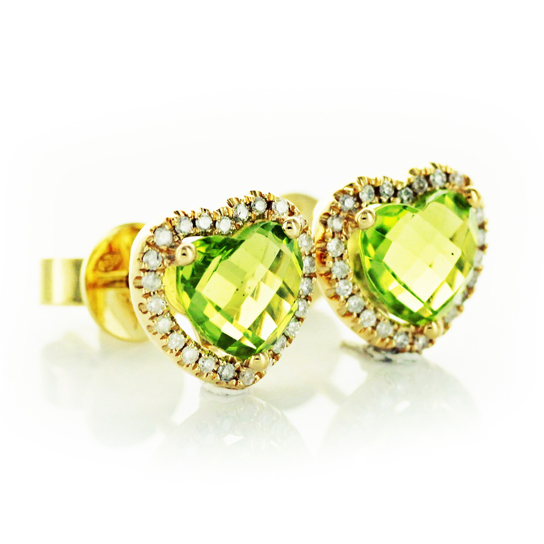 Ehtne | Imelised rohelised briljant-kõrvarõngad südamekujulised peridootidega