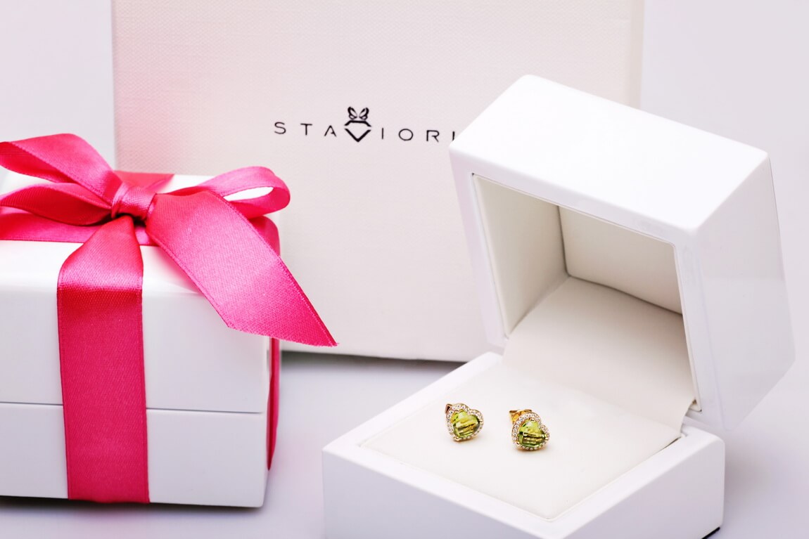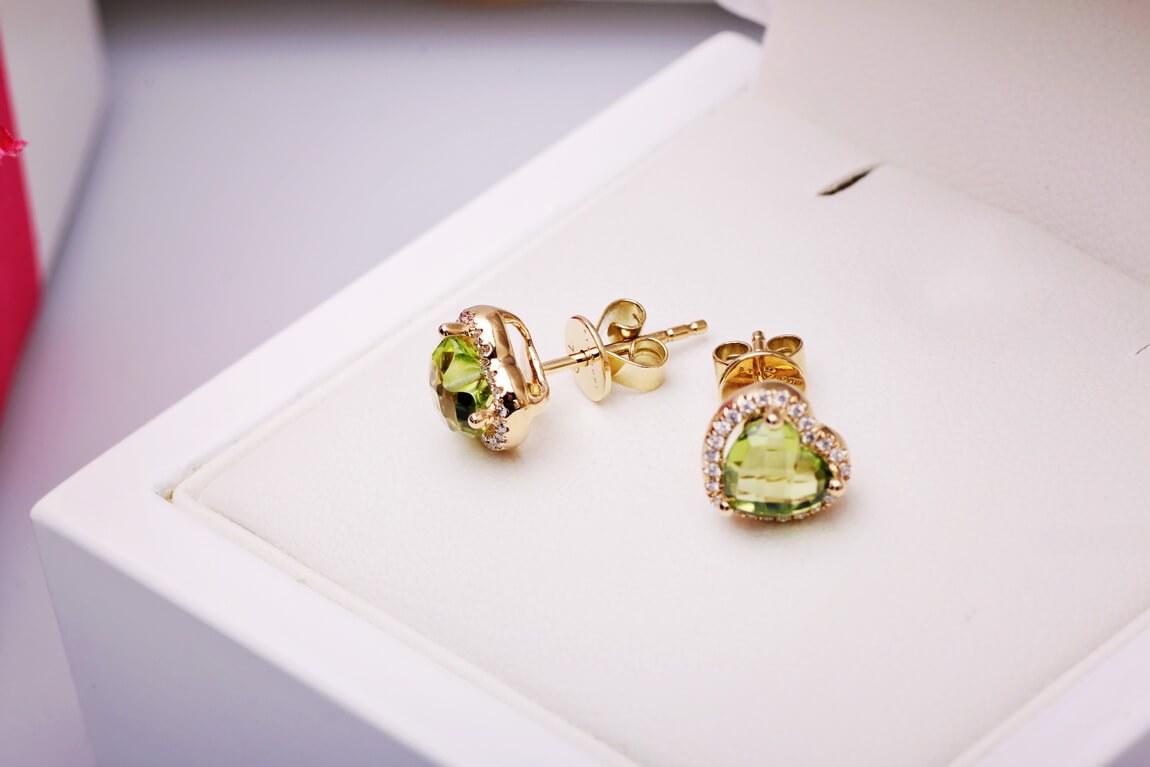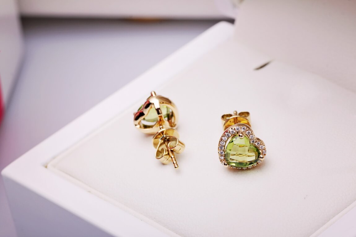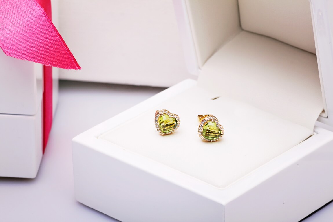 Ehtne | Imelised rohelised briljant-kõrvarõngad südamekujulised peridootidega