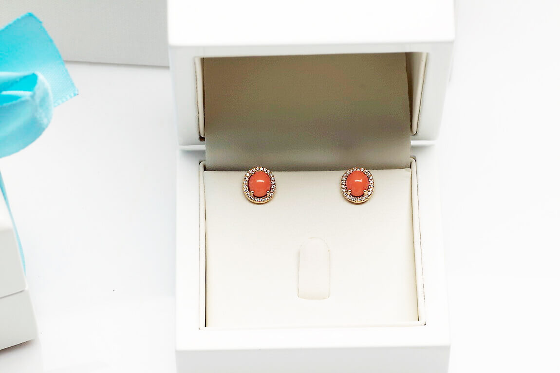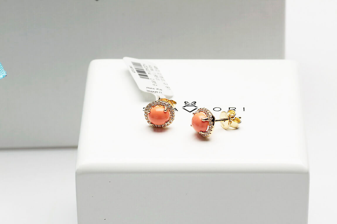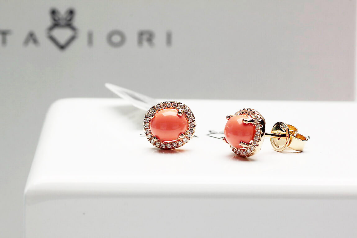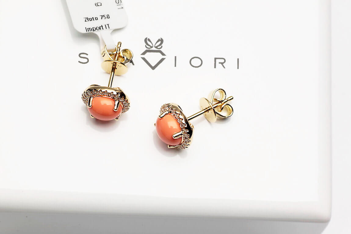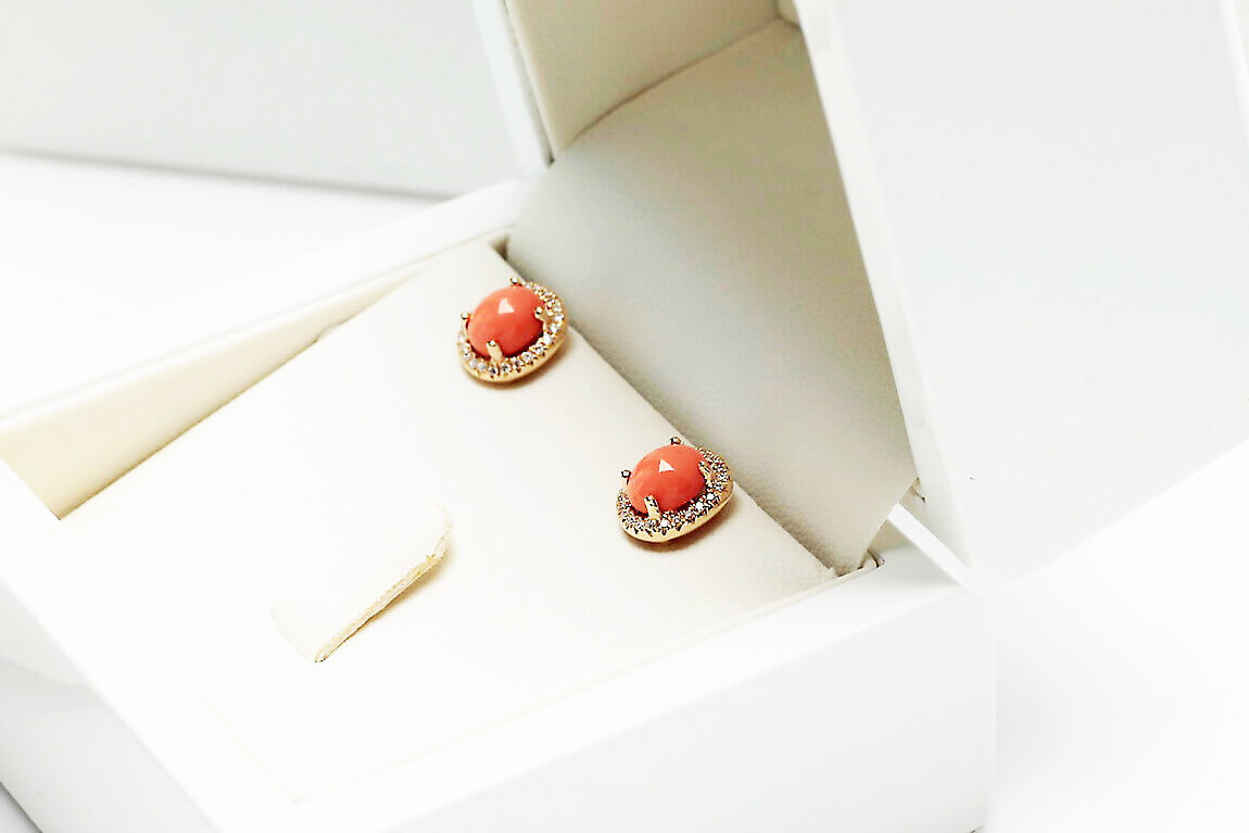 Ehtne | Kuldne kõrvarõngas koralli ja teemandiga