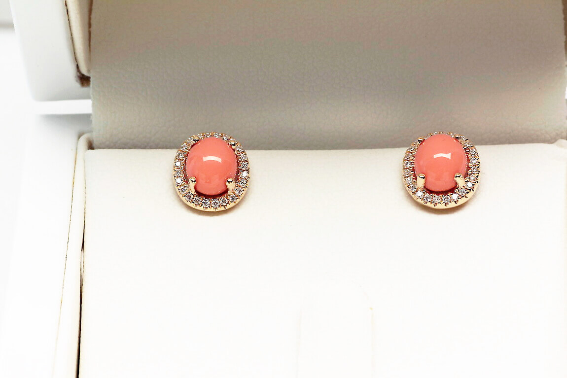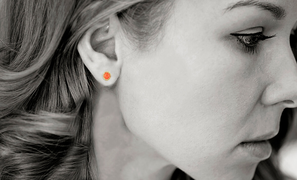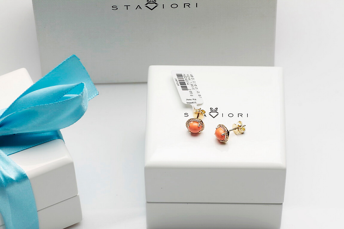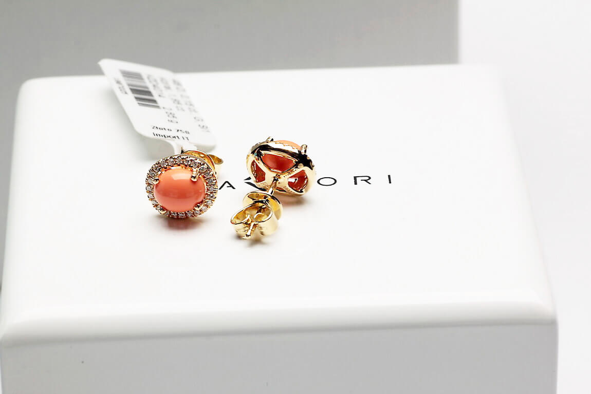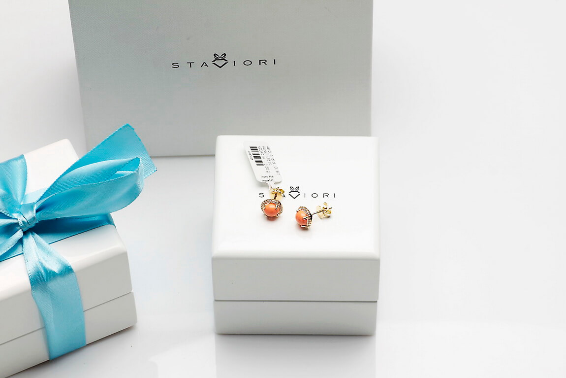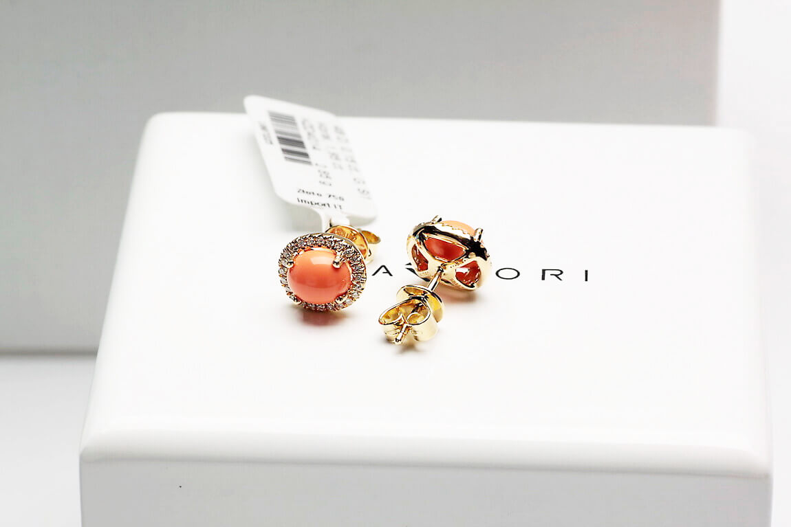 Ehtne | Kuldne kõrvarõngas koralli ja teemandiga