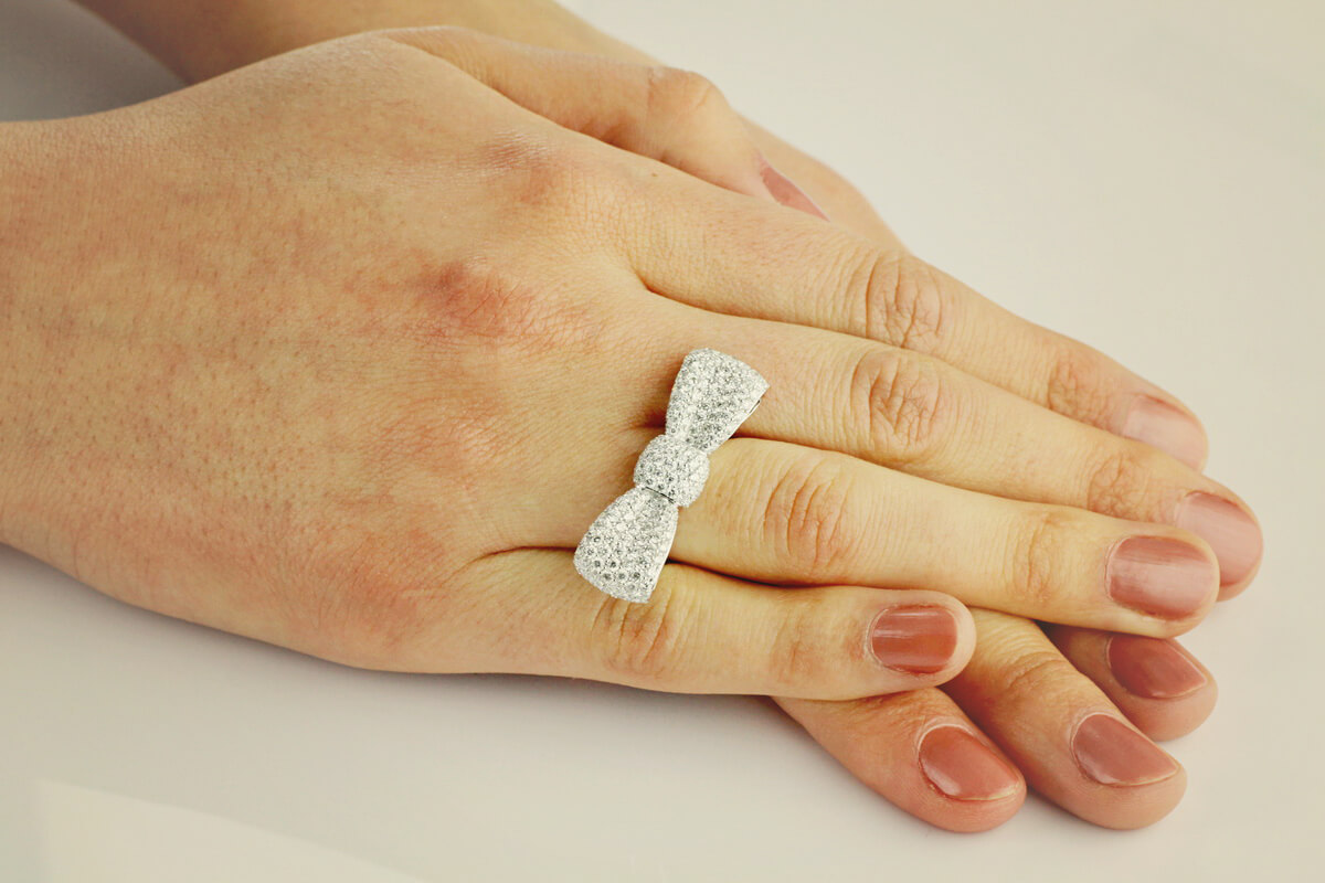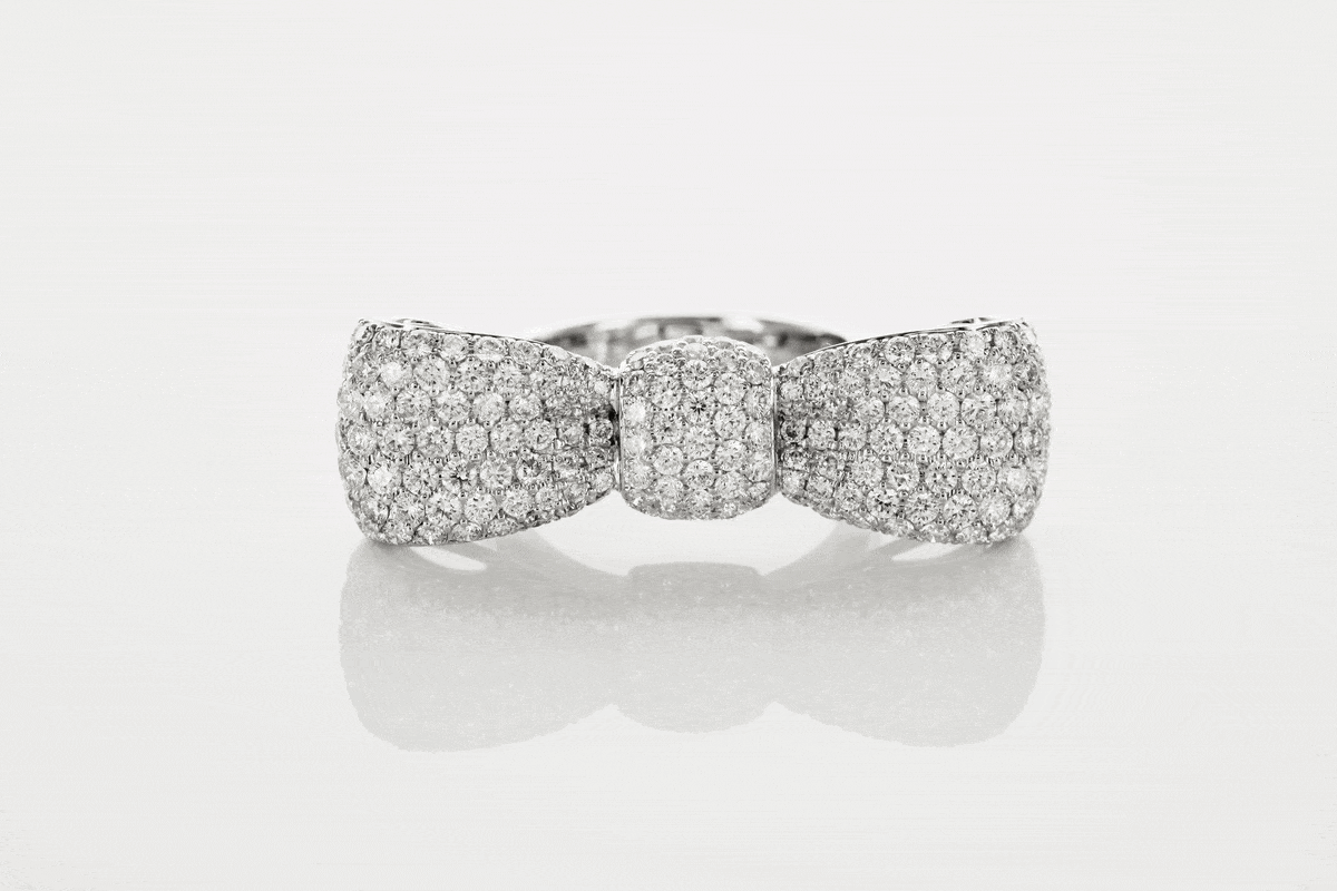 Ehtne | sõrmus kokardaga 18K valges kullas teemantitega