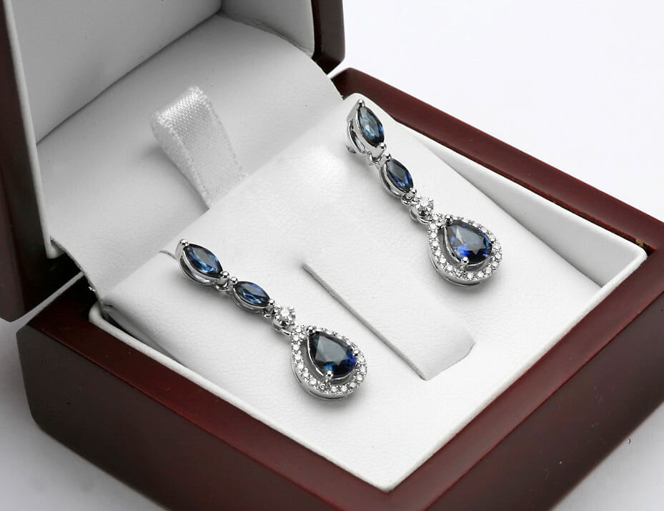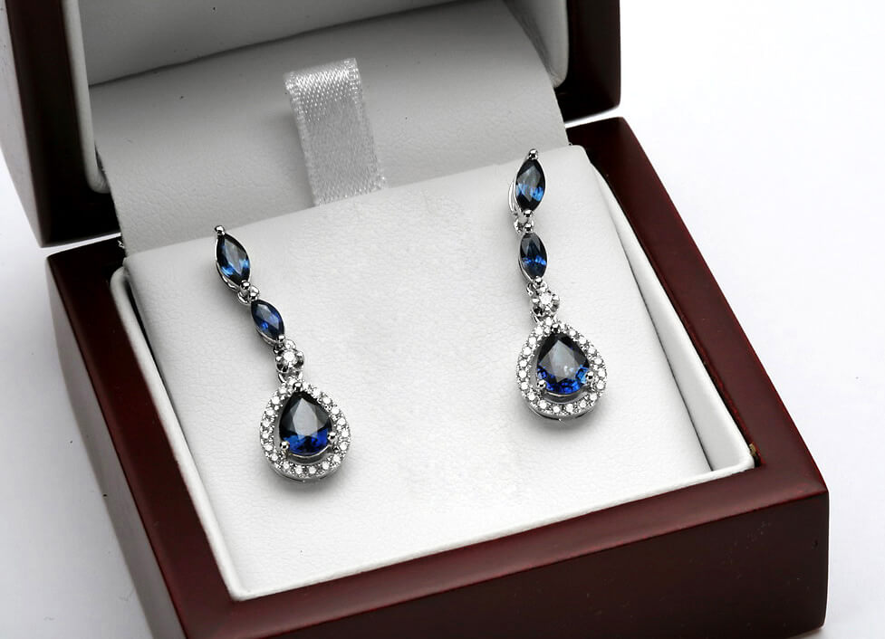 Ehtsad | Pikad sinised ja teemantiga kõrvarõngad