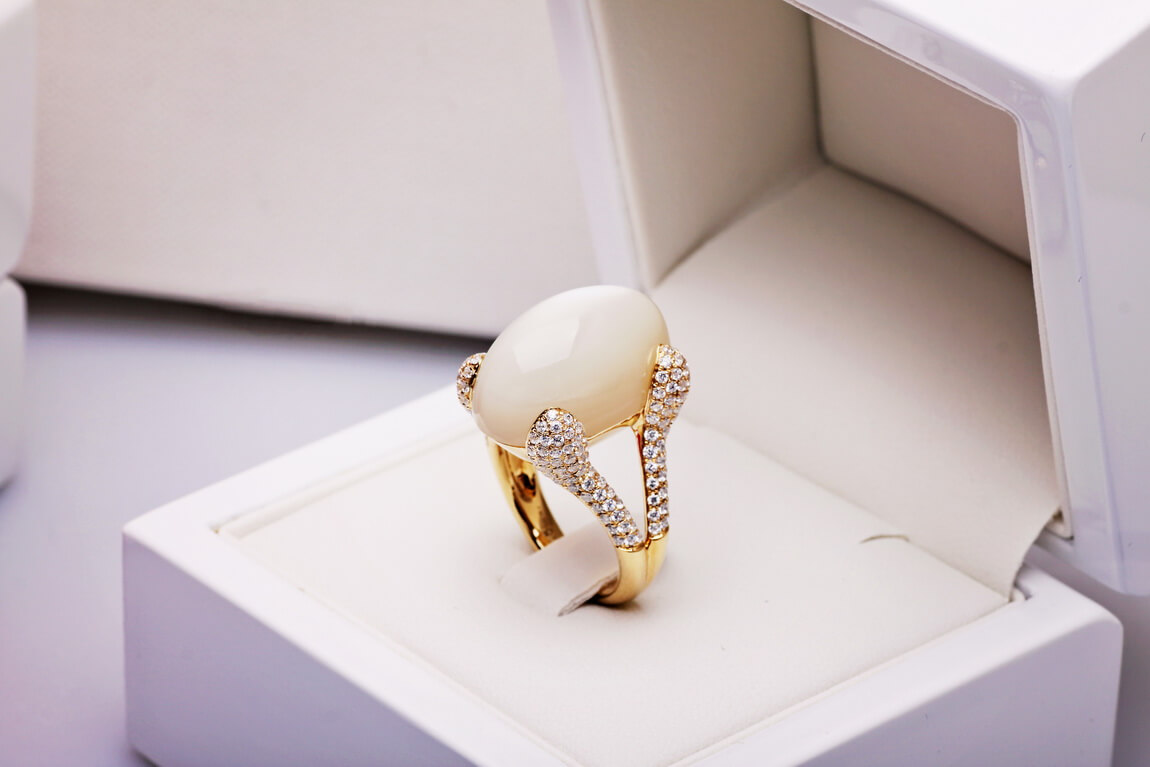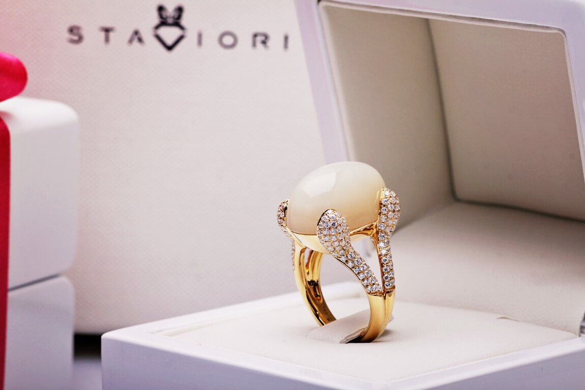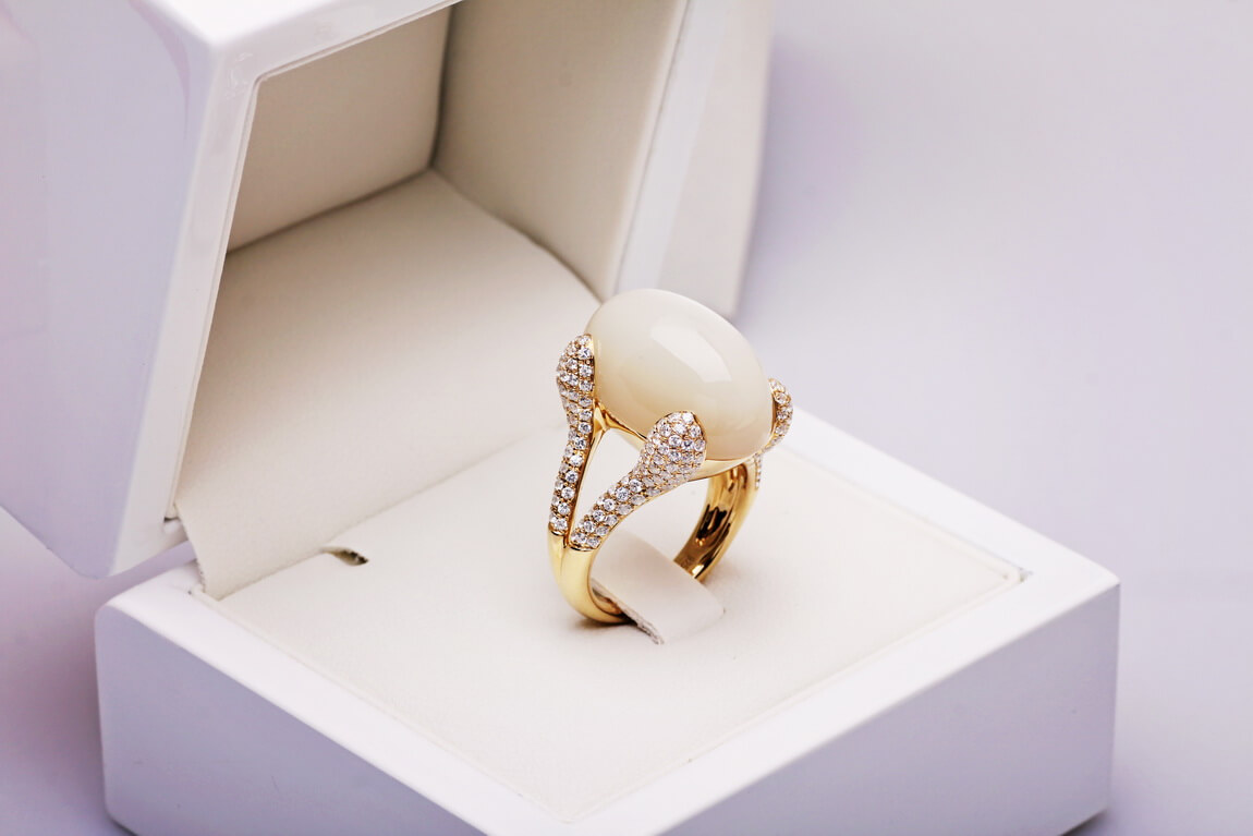 Eksklusiivne | erakordne kuukivi 18-karaadises kullas, kaunistatud 188 briljandiga