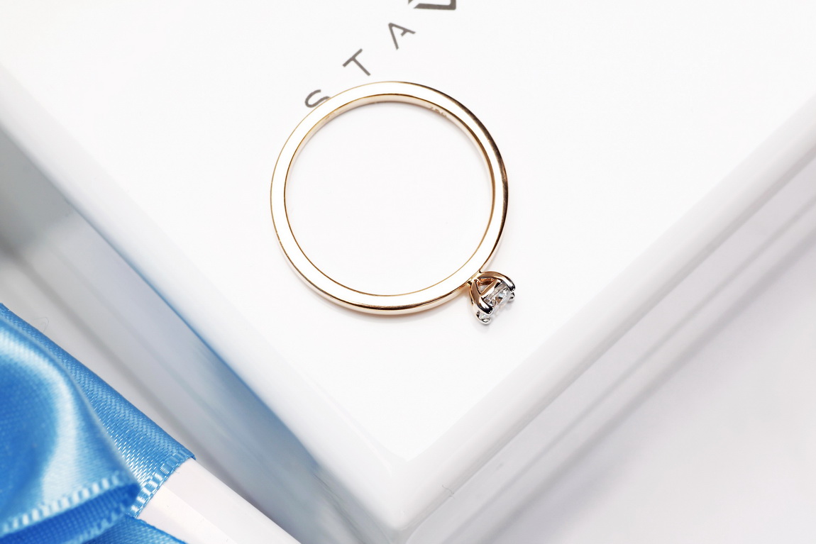 Moodne sõrmus – see on trendikas, õrn ja kaunis mudel. Sobib suurepäraselt õnnestunud kihlumiseks. Ilus, läikiv ja juba kaugelt nähtav 0,20 karaadine briljant on kinnitatud madala krooni nelja kinnitusnupu külge. Kollasest 14-karaadisest kullast koosnev tervik moodustab ühe Staviori® pakkumises oleva kõige kaunima ja samas moekaima kihlasõrmuste disaini.