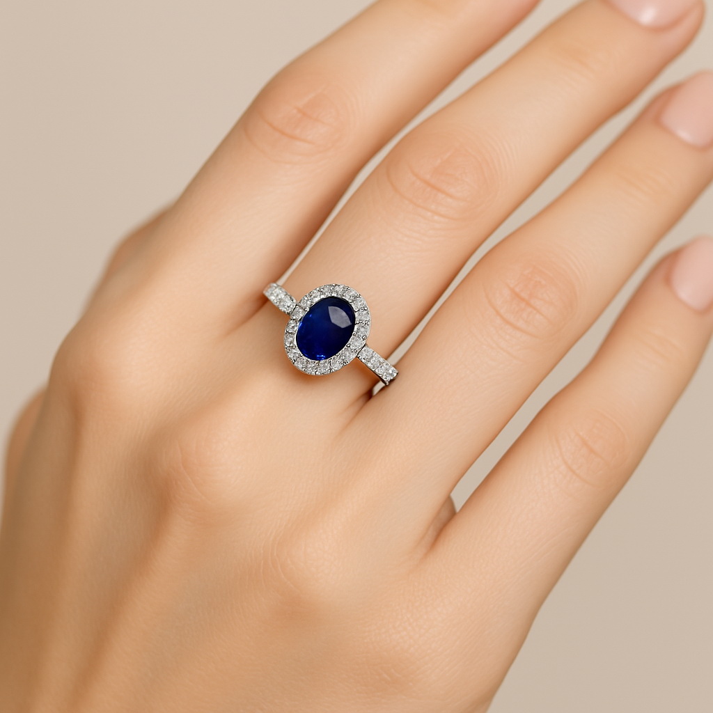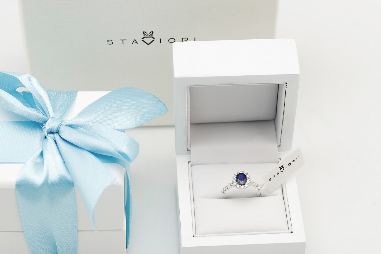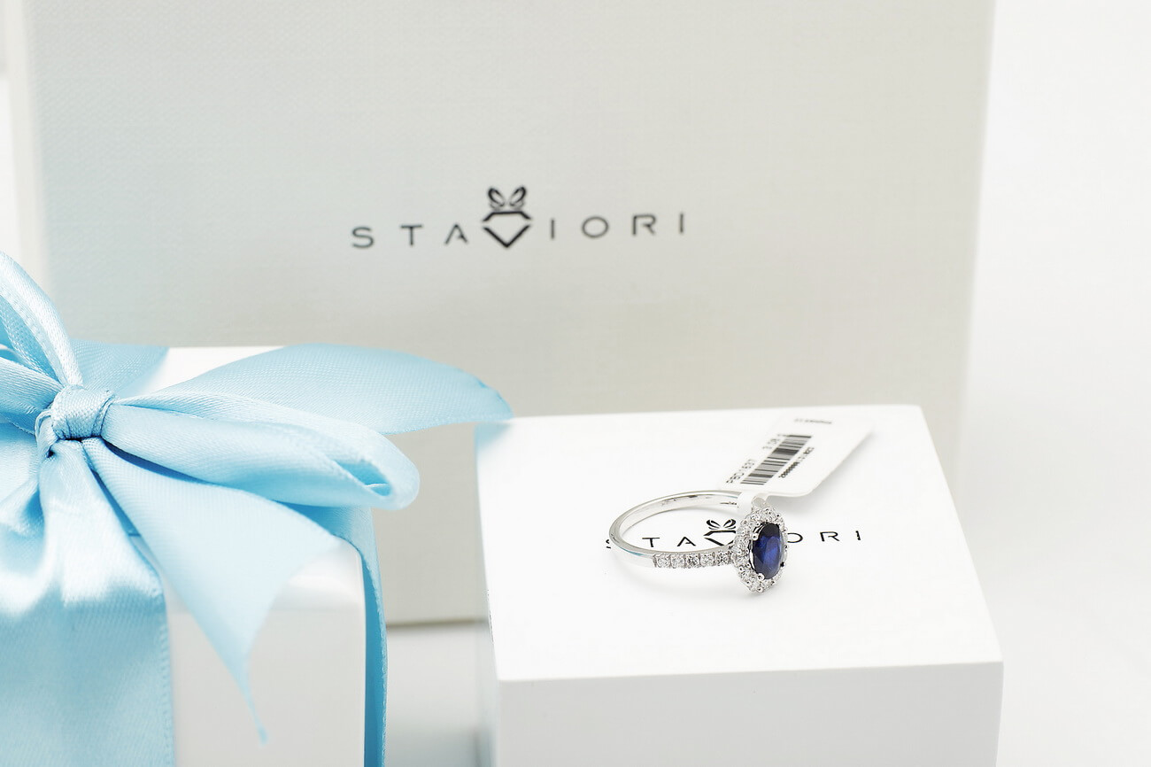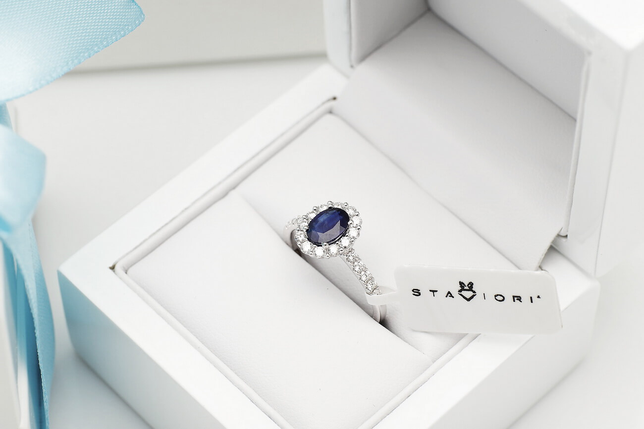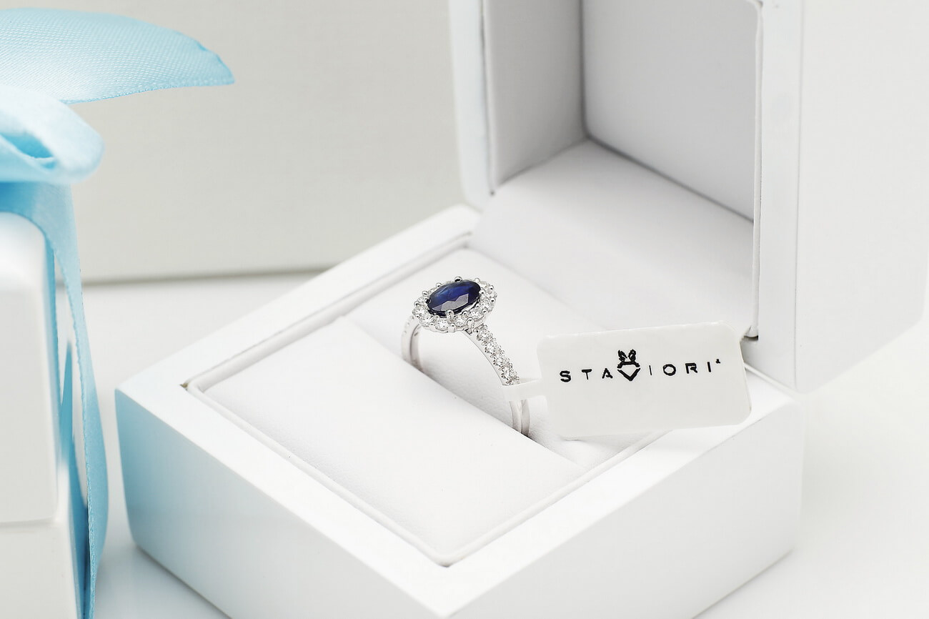 Eksklusiivne | ilus briljantsõrmus safiiriga 750 kullas