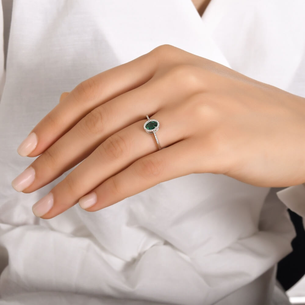 Imeilus smaragd- ja briljantsõrmus.