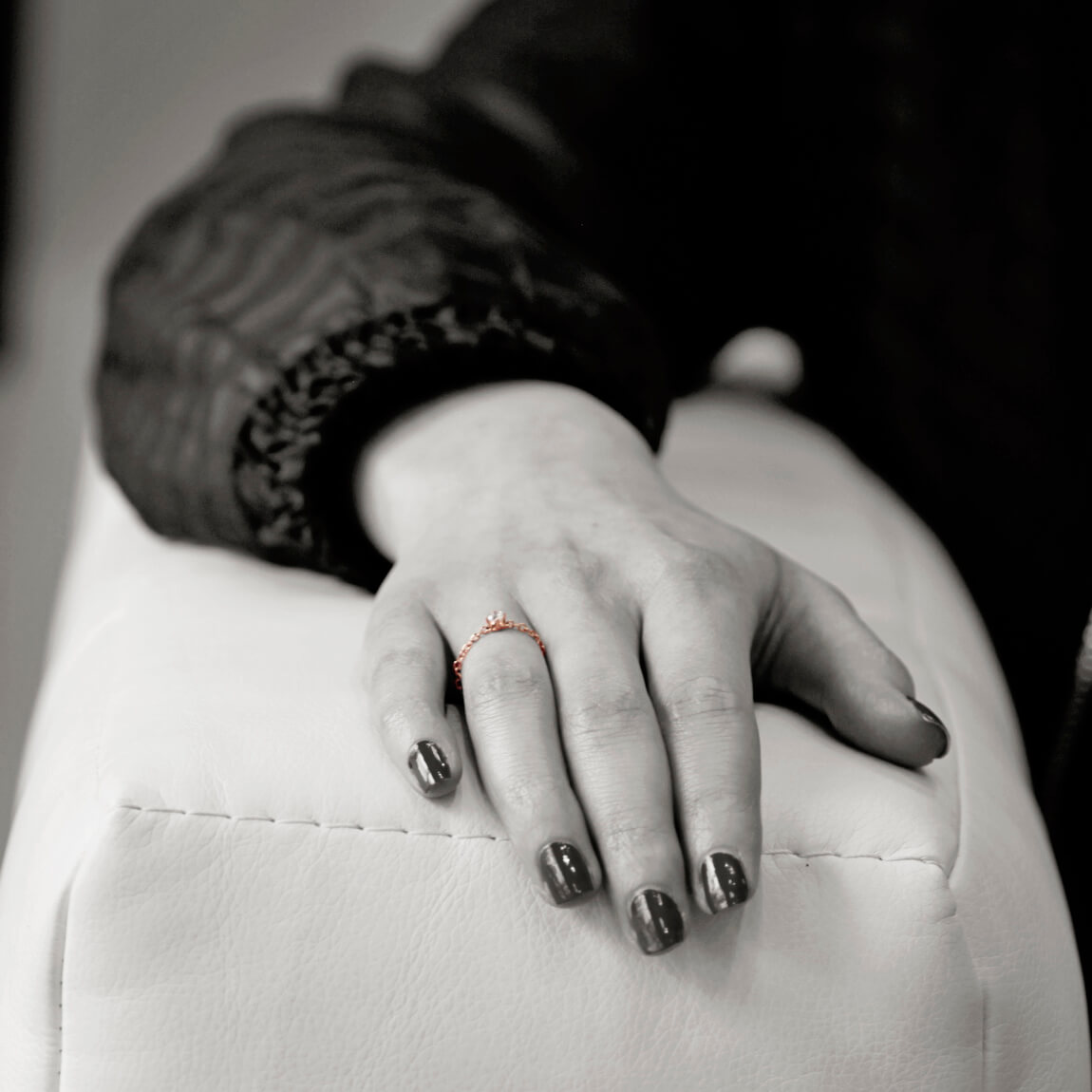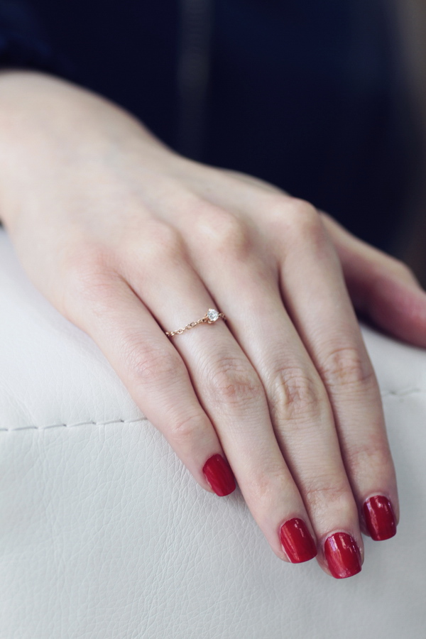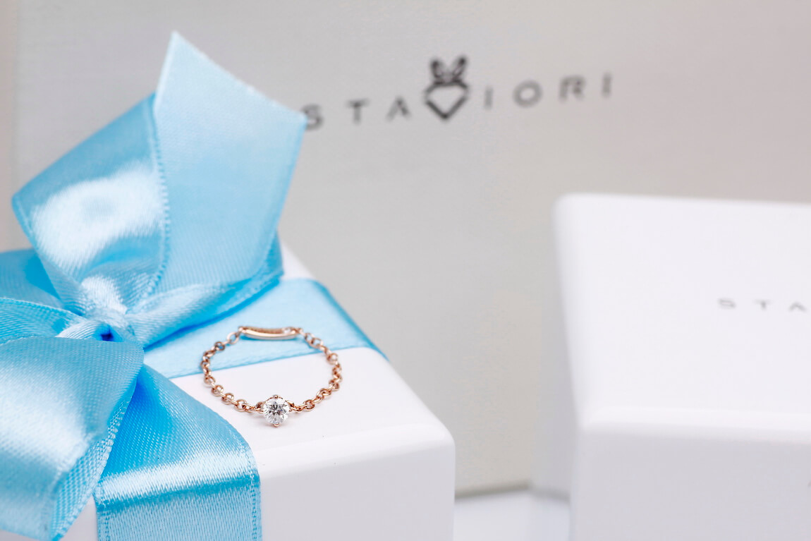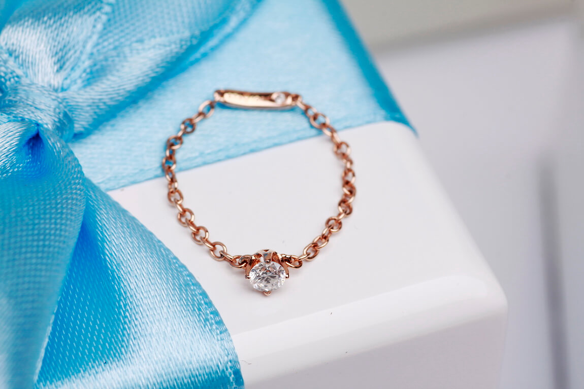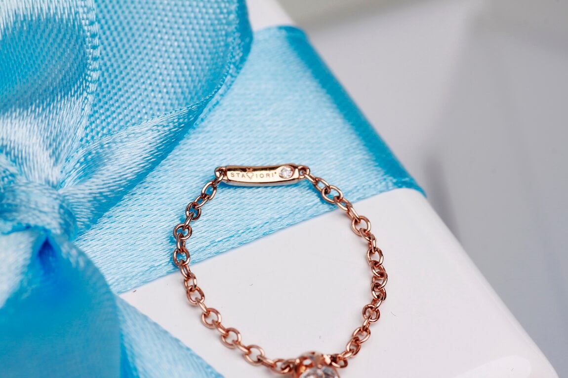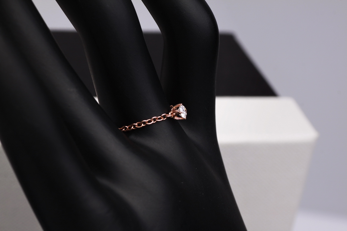 Originaalne ja kaunis sõrmus roosast kullast. Ühendab endas kaelakee peenuse ja Itaalia disaini ilu. Selles erakordses mudelis on kaks briljanti. Üks, kaaluga 0,13ct, on asetatud täiuslikku pesasse ja pimestab kõiki oma sära. Teine asub sõrmuse alusel, andes sellele veelgi suurema erilisuse.
