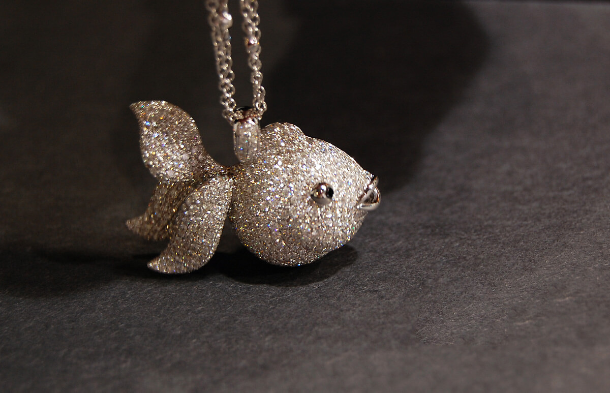 Eksklusiivne | kuldkala teemantitega 18-karaadisest valgest kullast