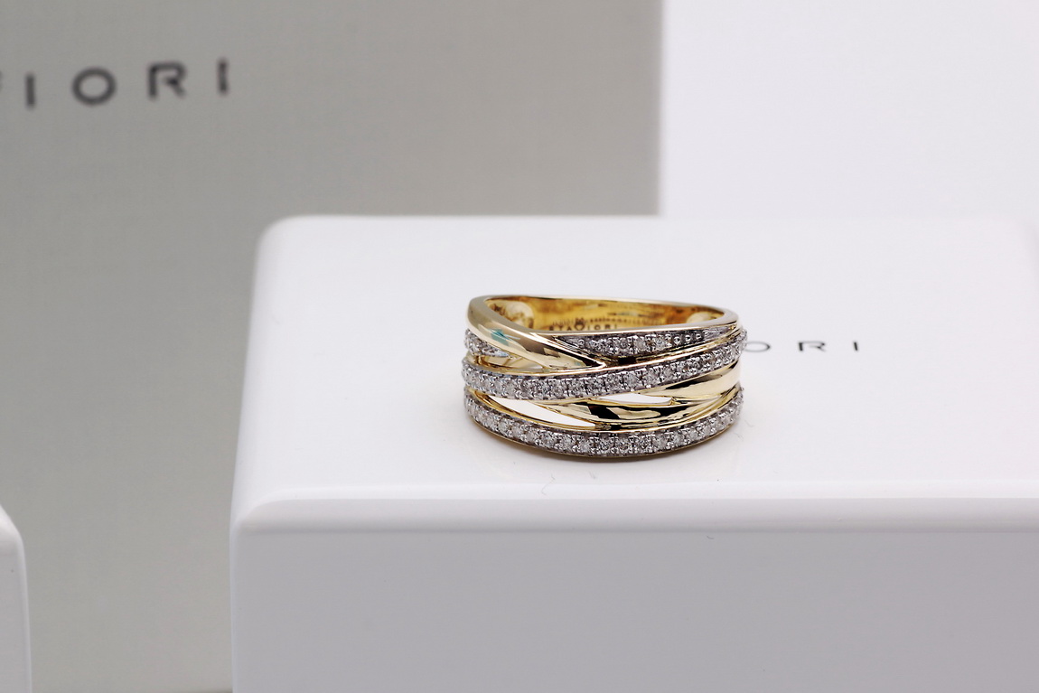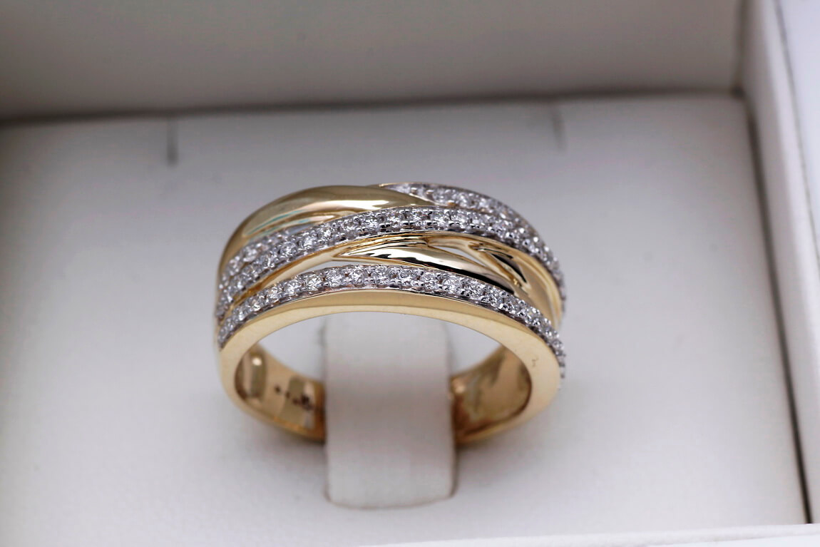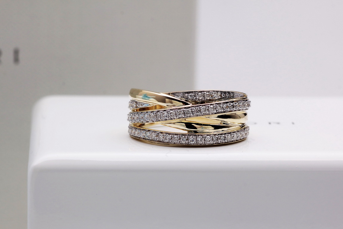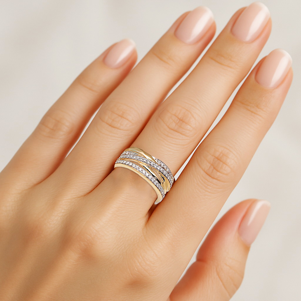 Eksklusiivne | kuldne lai sõrmus briljantidega kahevärvilises kullas