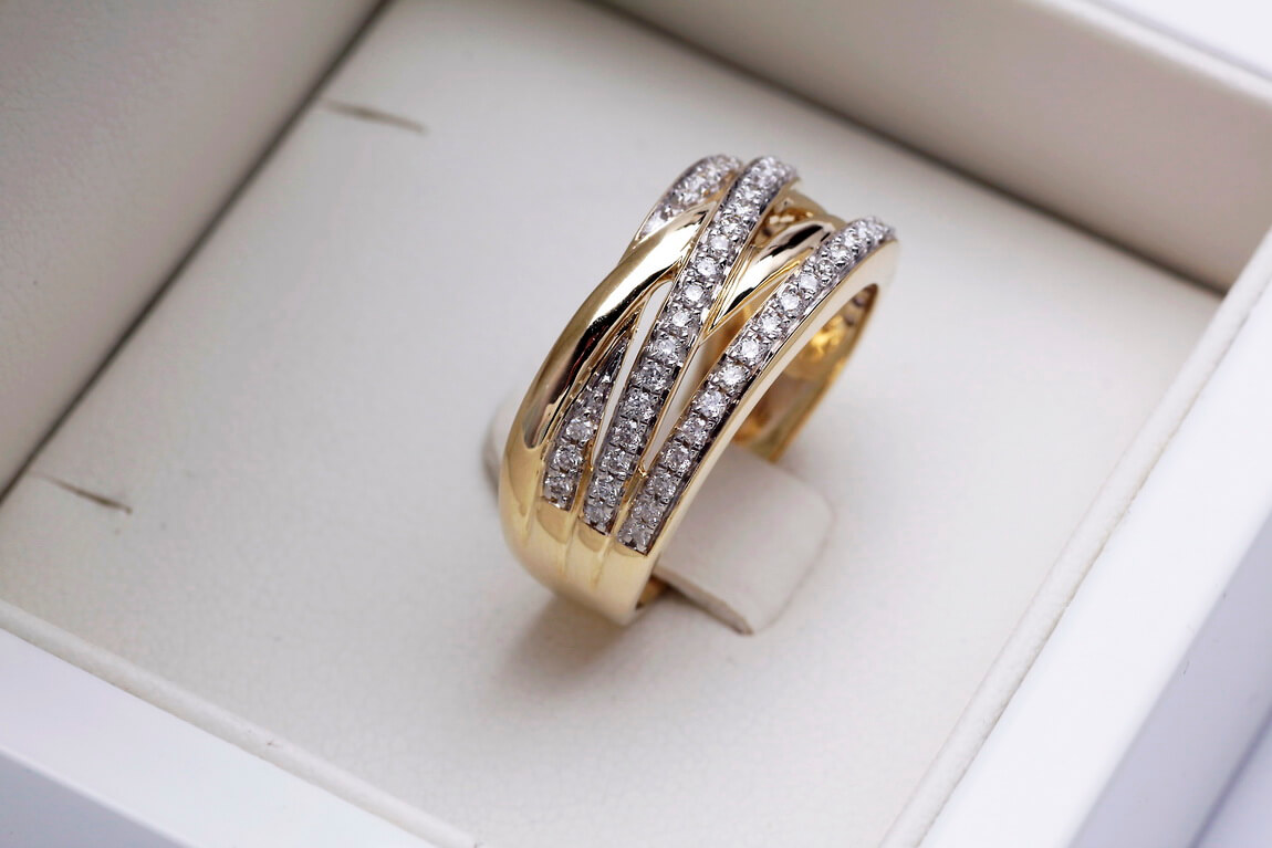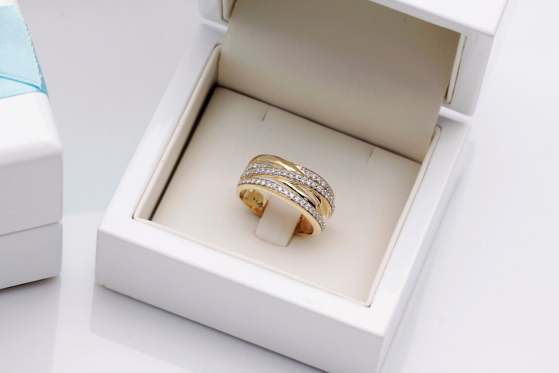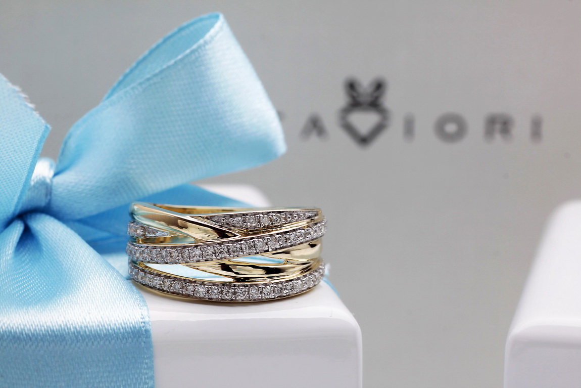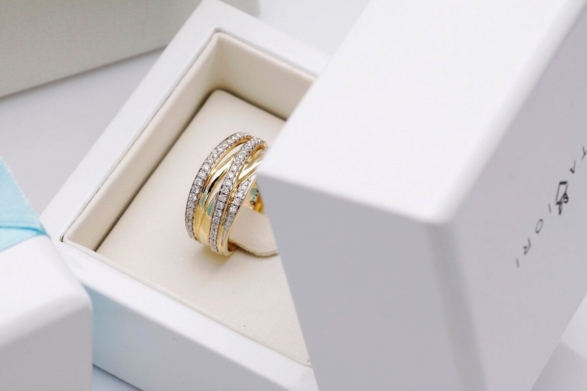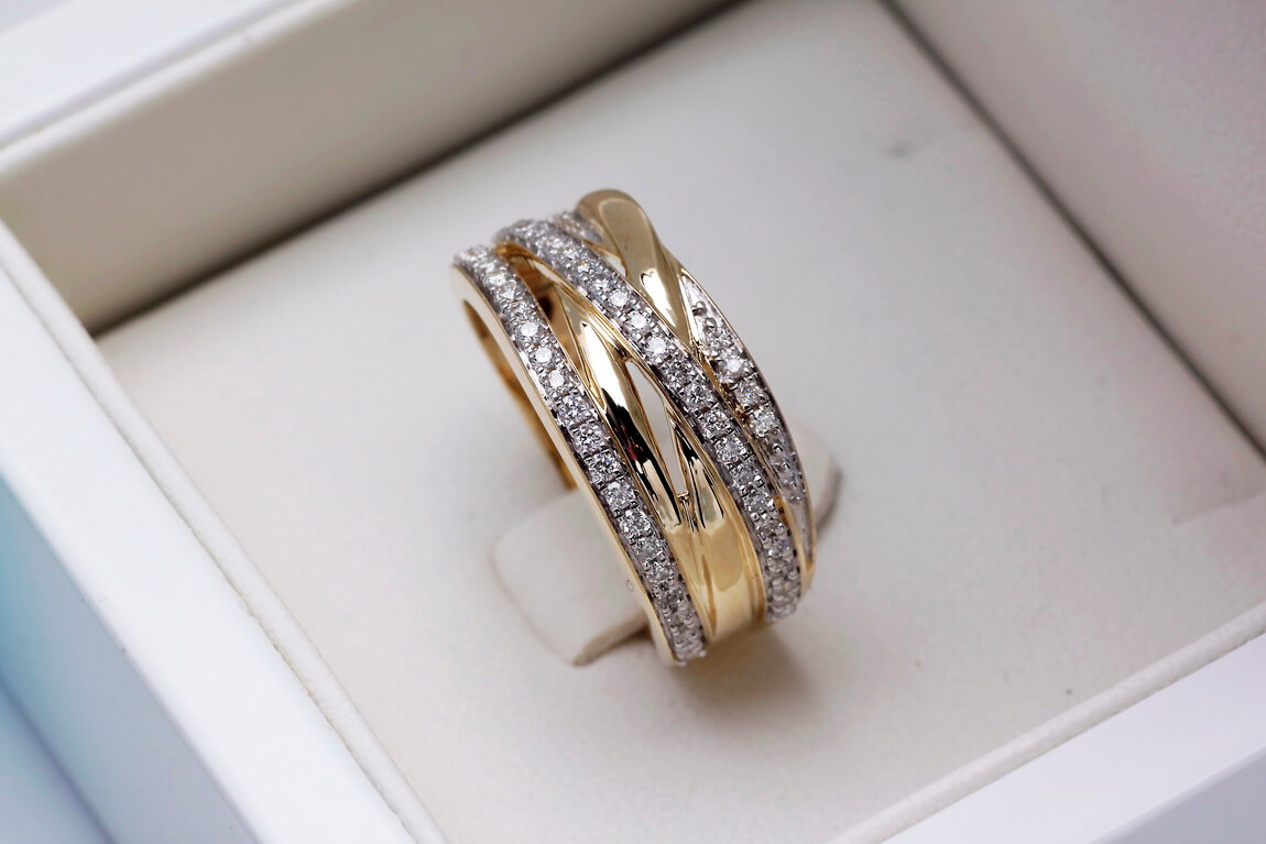 Eksklusiivne | kuldne lai sõrmus briljantidega kahevärvilises kullas