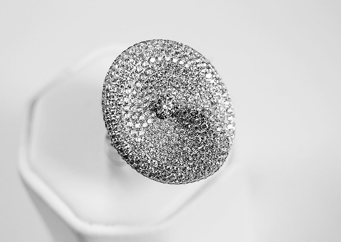 Efektne kokardi kujuline kihlasõrmus, valmistatud 750 kollasest kullast ja kaunistatud 175 briljandiga kogukaaluga 2,84 ct. Säravad teemandid loovad äärmiselt muljetavaldava kompositsiooni, mis paistab silma oma sära ja stiilsusega. See on eriline mudel naistele, kes hindavad luksuslikke, graatsilisi ja klassikalisi ehteid.