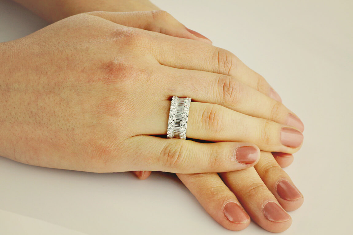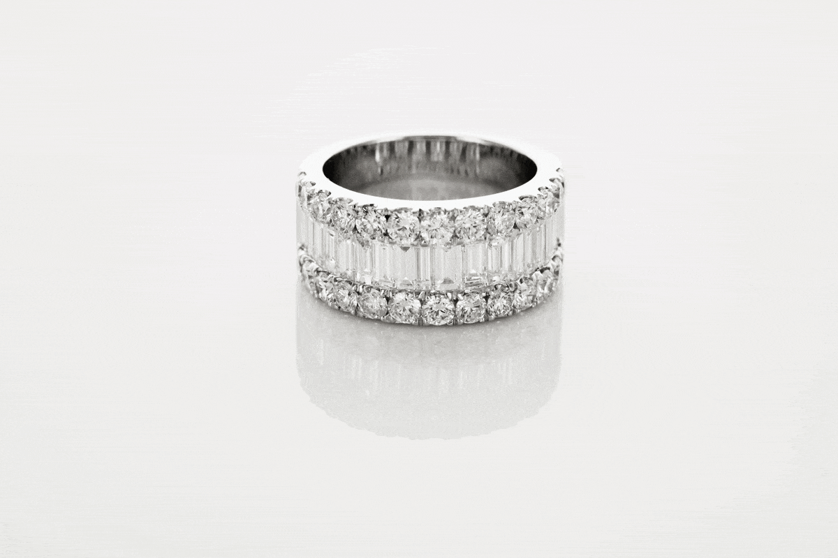 Eksklusiivne | lai sõrmus briljantide ja baguettidega, kuld 750