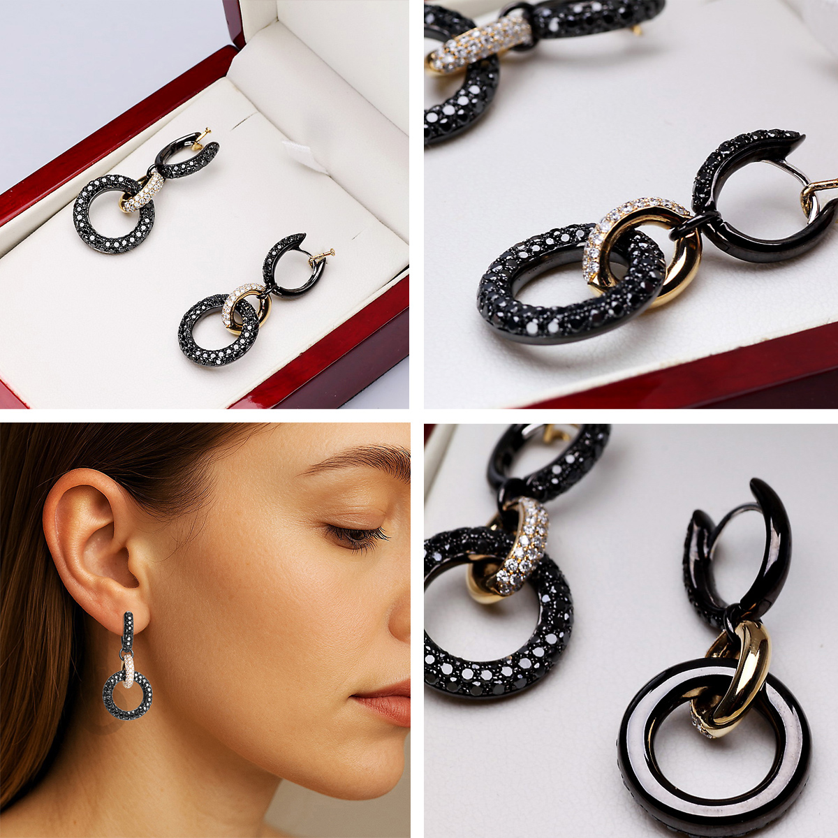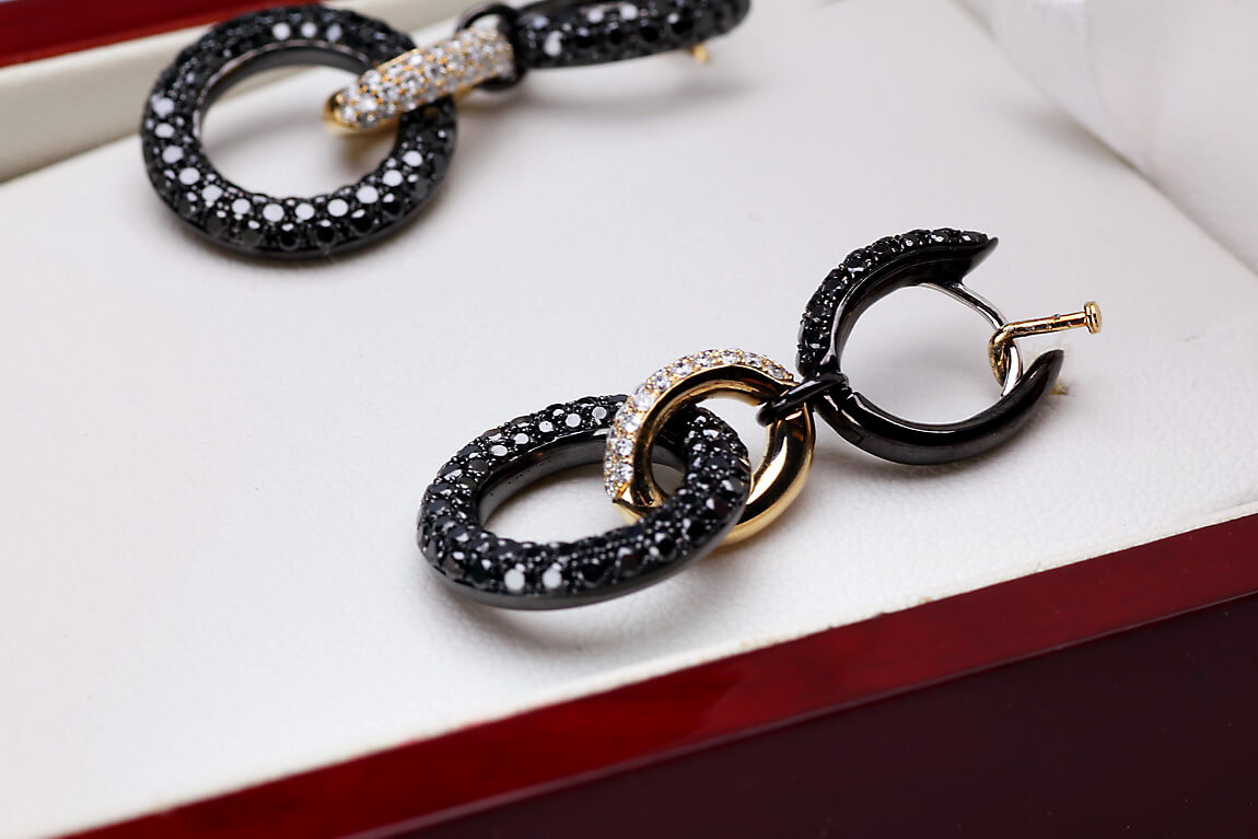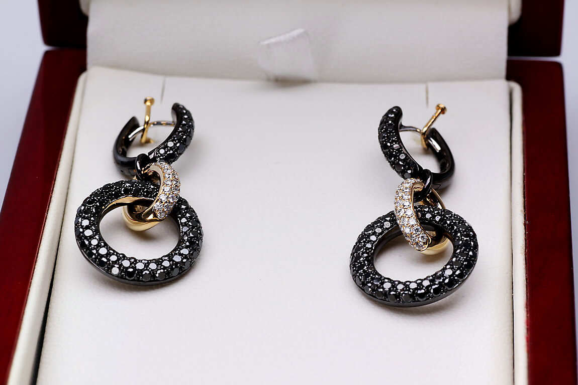 Eksklusiivne | musta ja kollase kullaga kõrvarõngad teemantitega