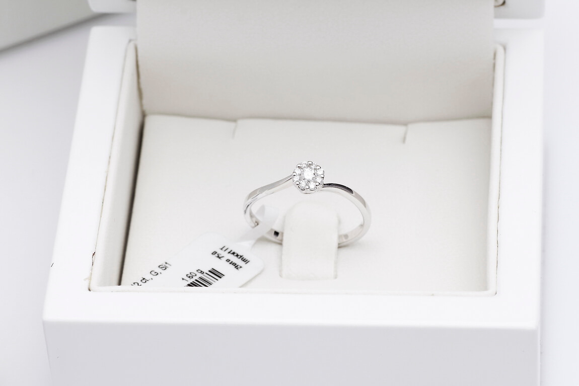 Eksklusiivne sõrmus 750 kullast teemantitega 0,21 ct