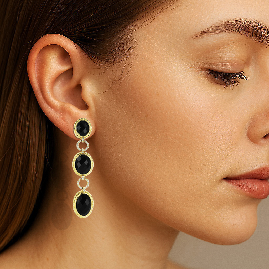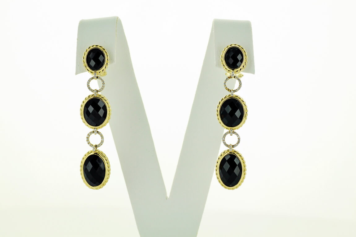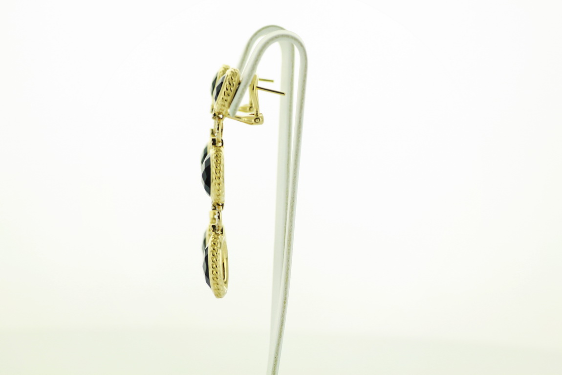 Eksklusiivne | pikk rippuv kuldkõrvarõngas oonüksiga ja teemantitega