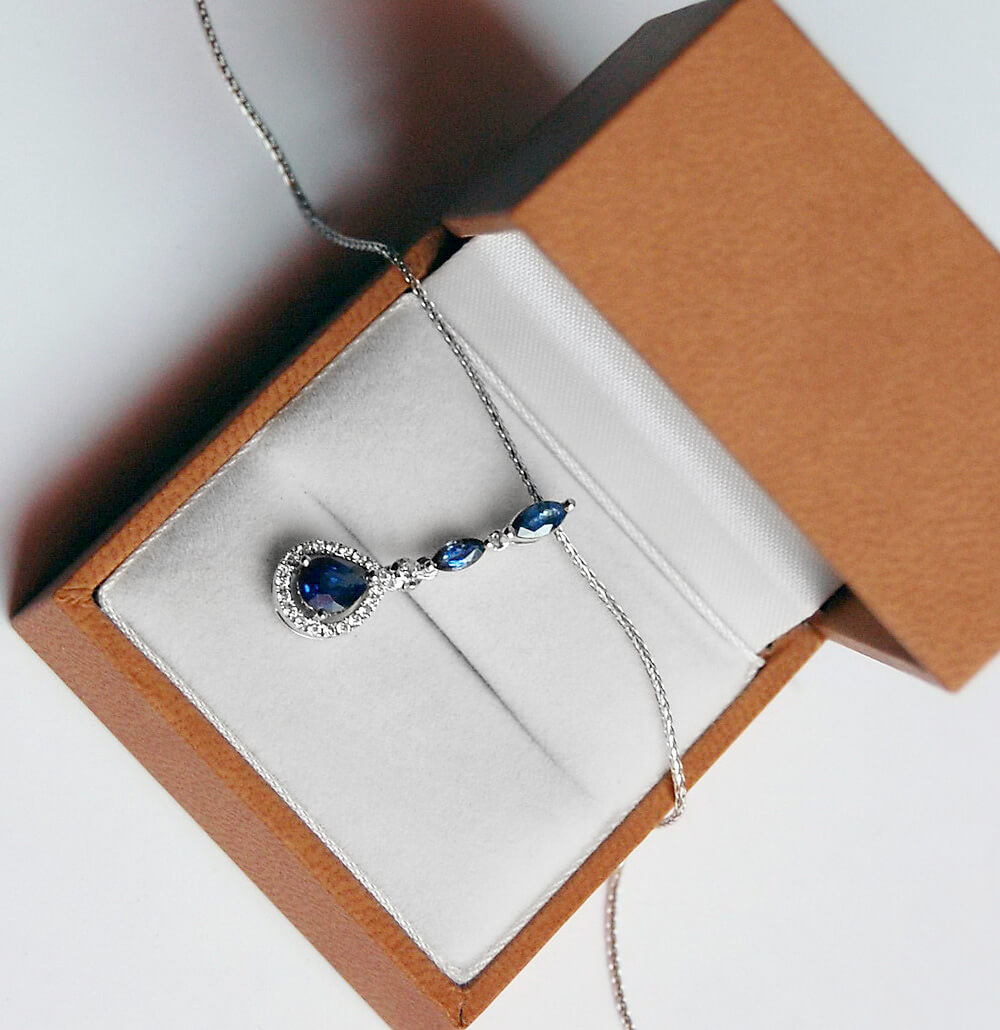 Eksklusiivne | pikk valge kullast 750 prooviga ripats safiiride ja teemantitega