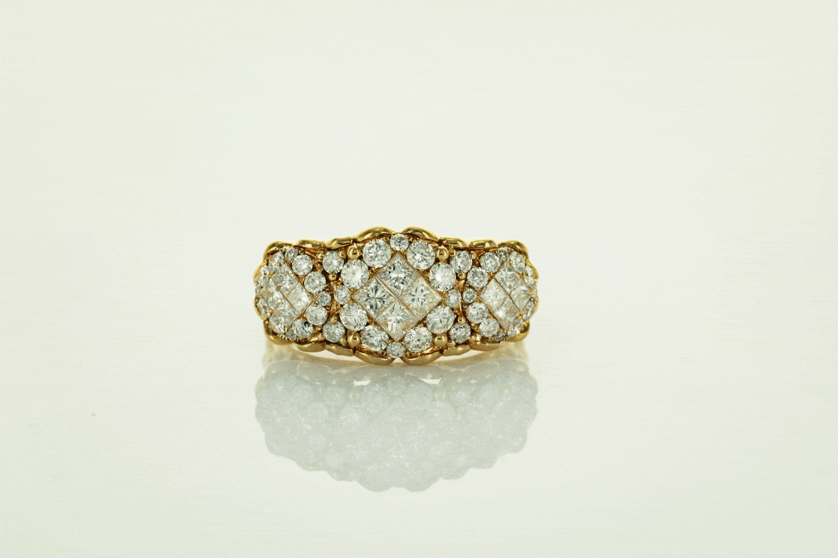 Eriline 750 kollasest kullast kihlasõrmus, kaunistatud 16 särava teemandiga kogukaaluga 0,35 ct. Iga kivi on paigutatud peenesse raami, luues õrna, kuid samas efektse kompositsiooni kogu sõrmuse ümber. See on stiilne ja graatsiline mudel, mis rõõmustab ajatu sära ja ainulaadse iseloomuga. Ideaalne valik neile, kes hindavad originaalset ja luksuslikku disaini.