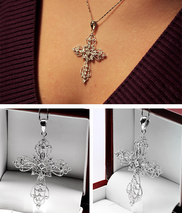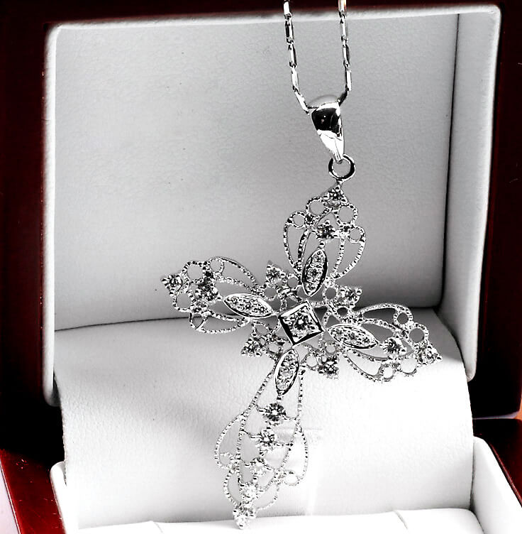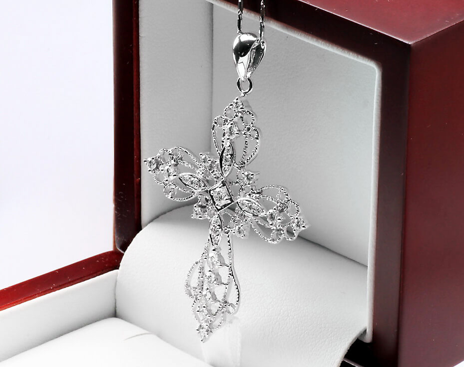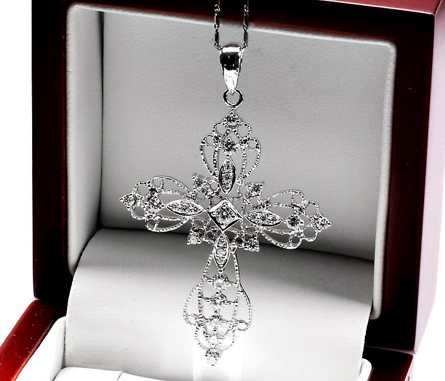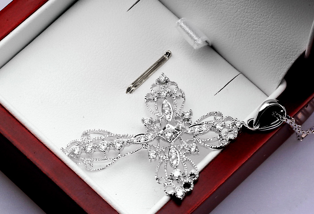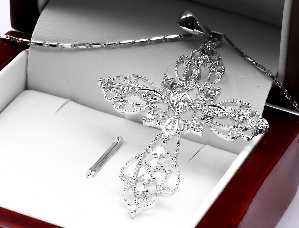 Eksklusiivne | ristiteemantitega ripats, valge kuld 750