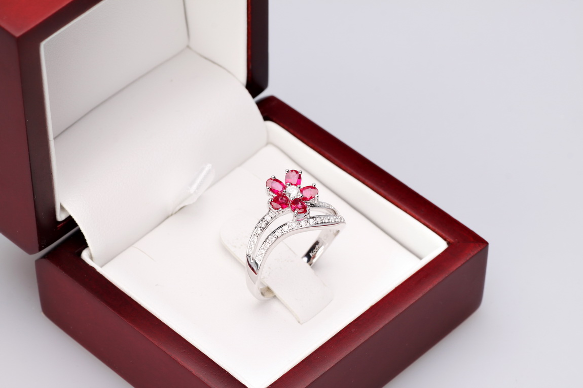 Kollase kullaga sõrmus rubiini ja teemantitega