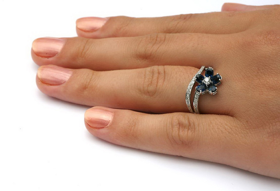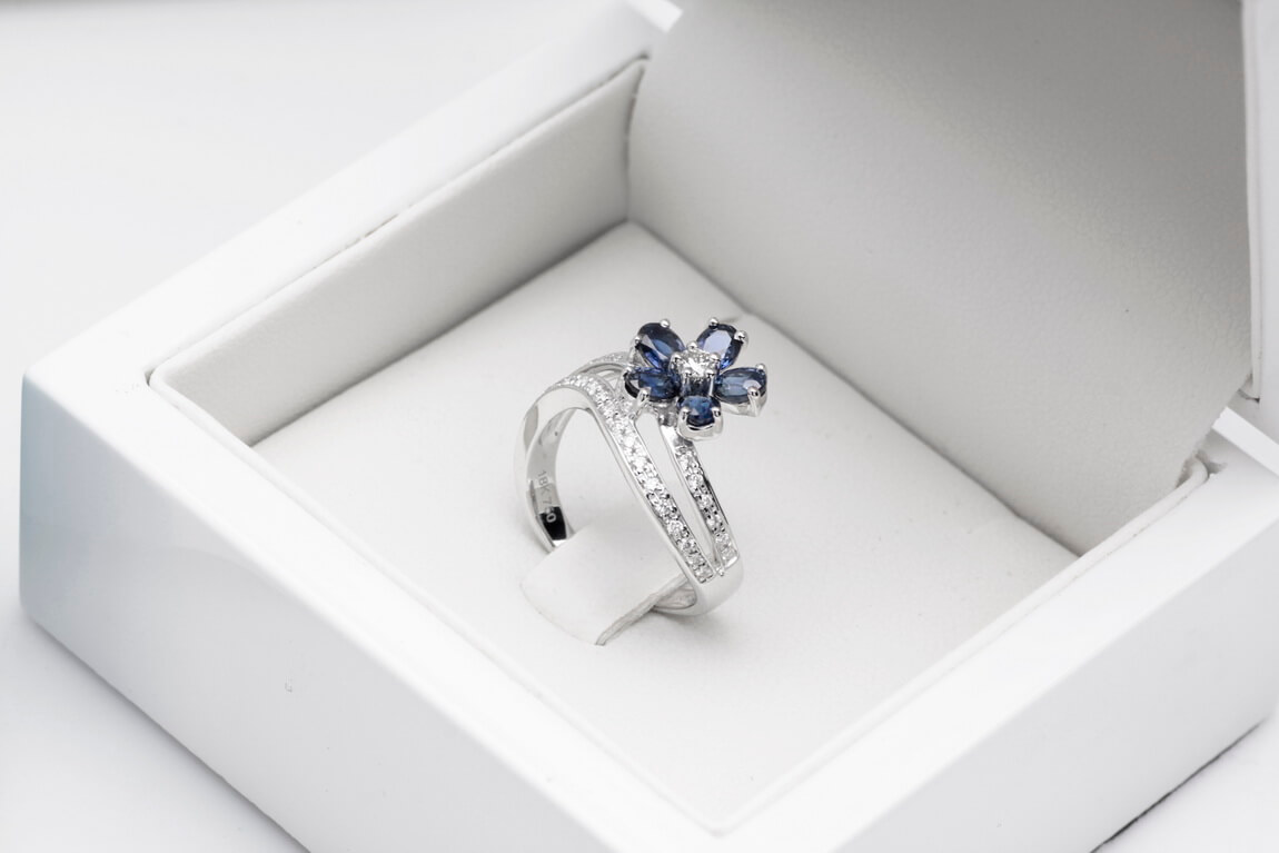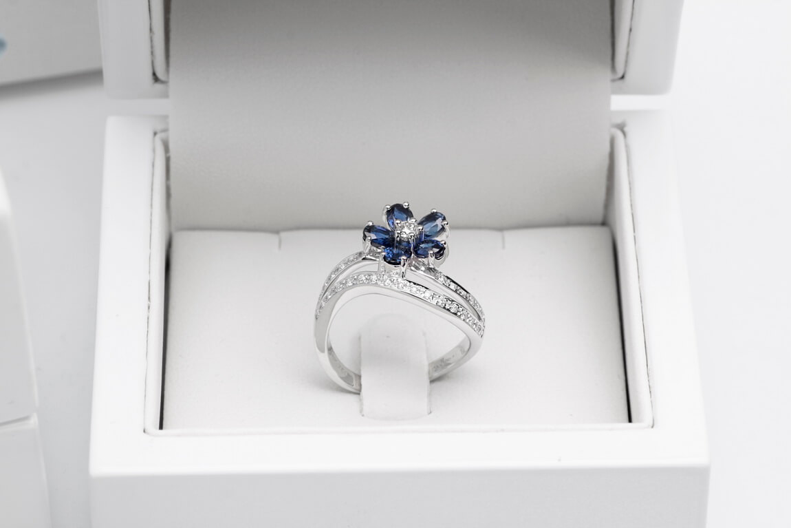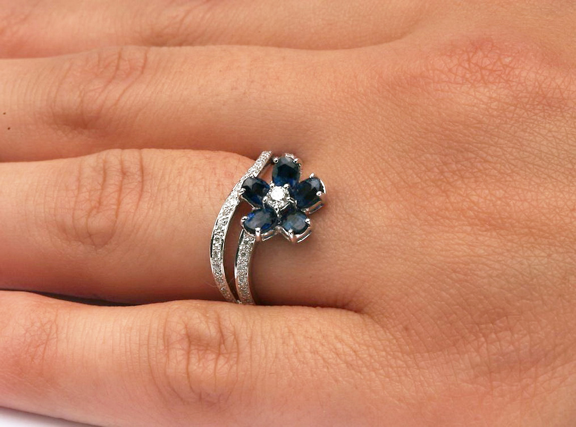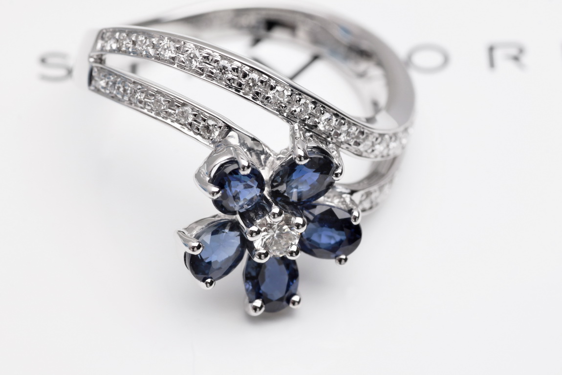 Eksklusiivne | safiiri ja briljantidega lillekujuline sõrmus kullaga 750