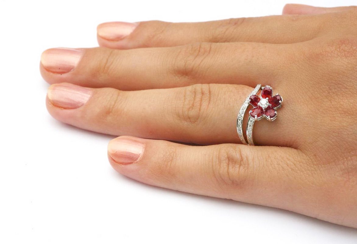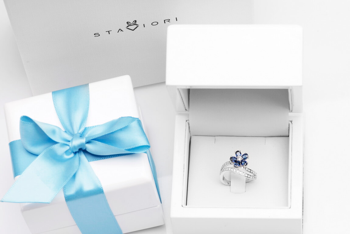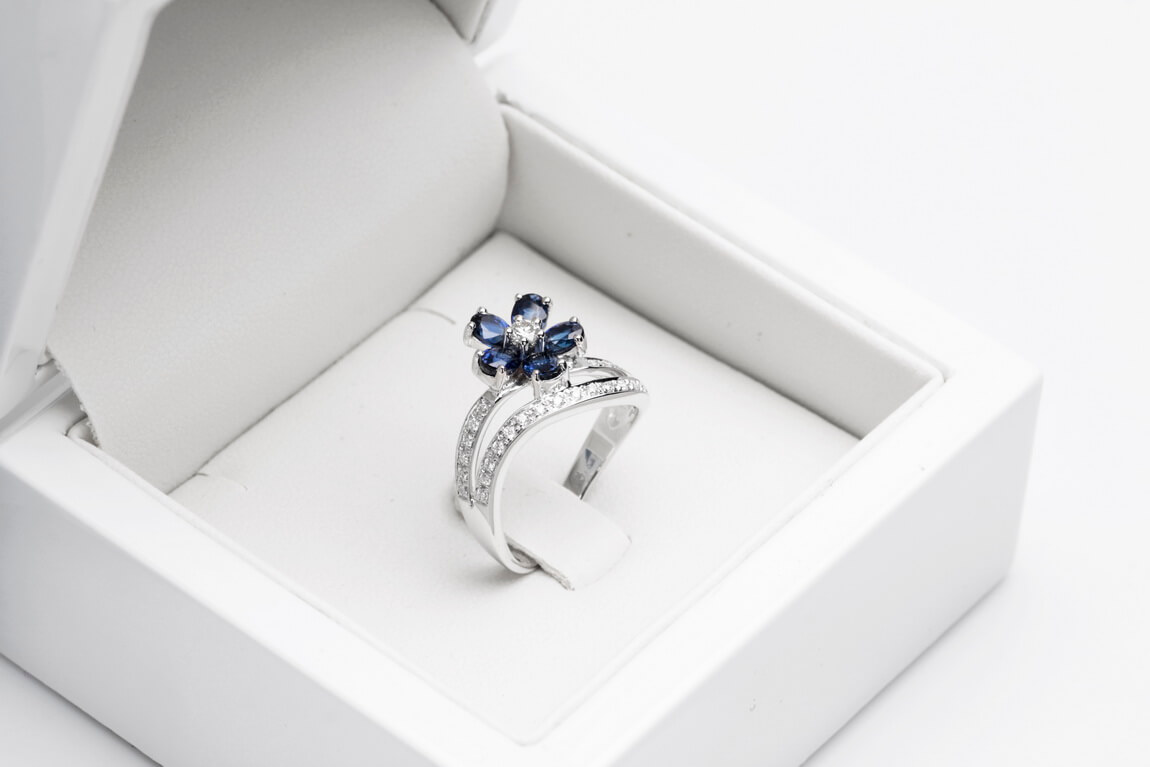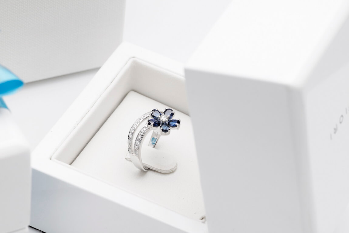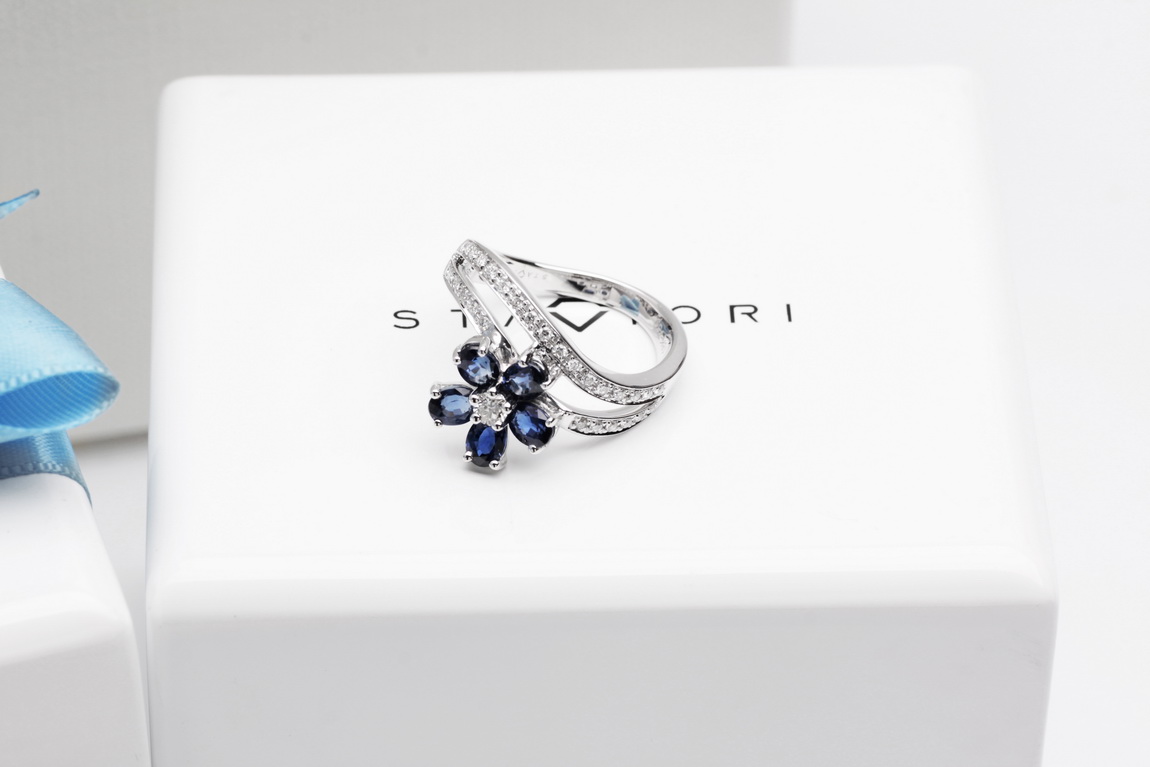 Eksklusiivne | safiiri ja briljantidega lillekujuline sõrmus kullaga 750