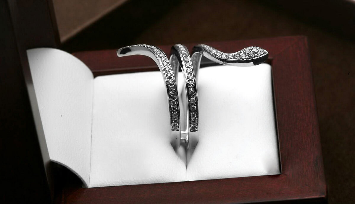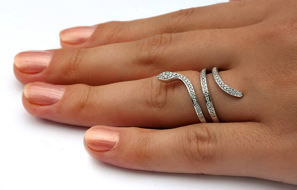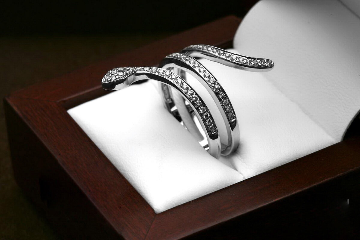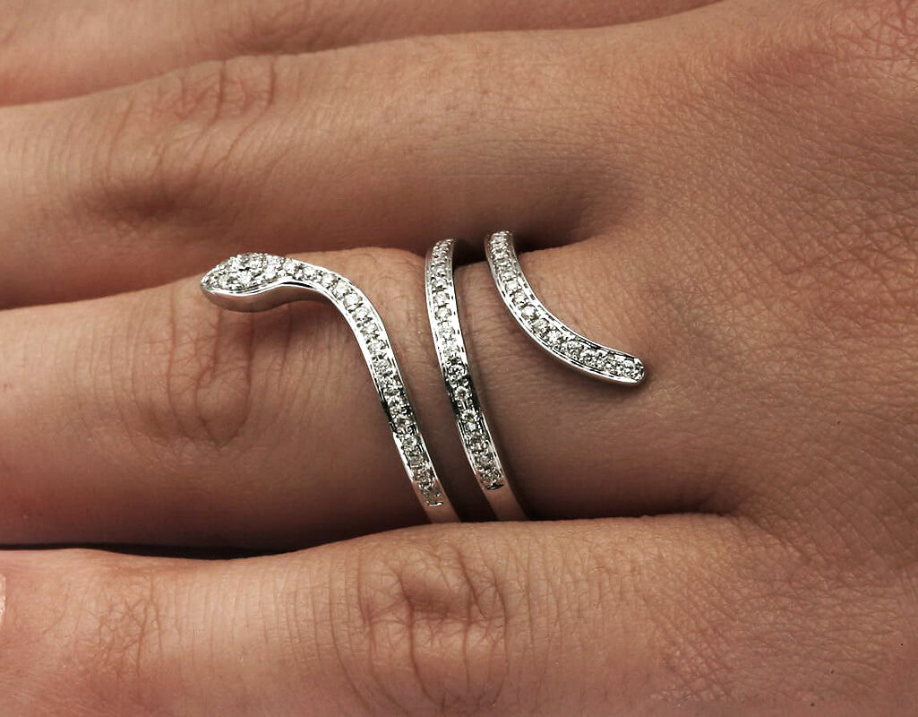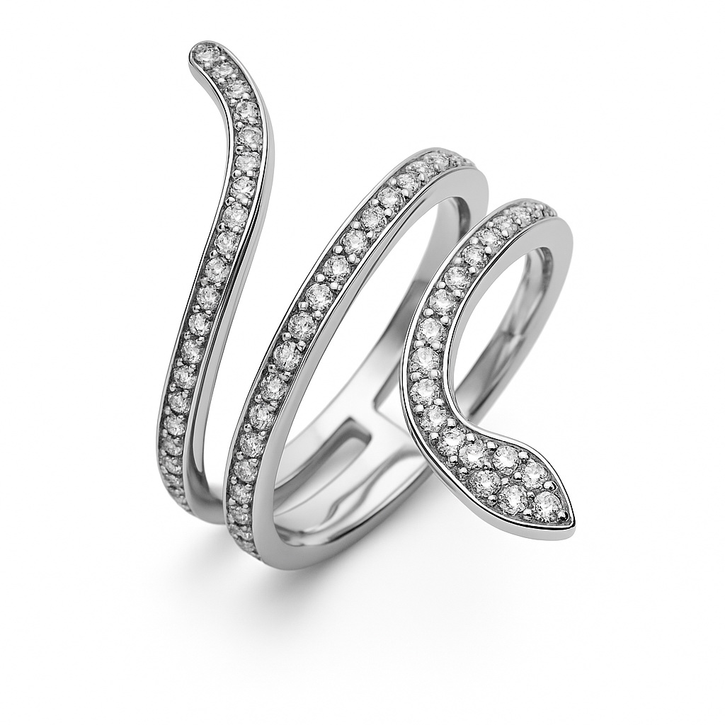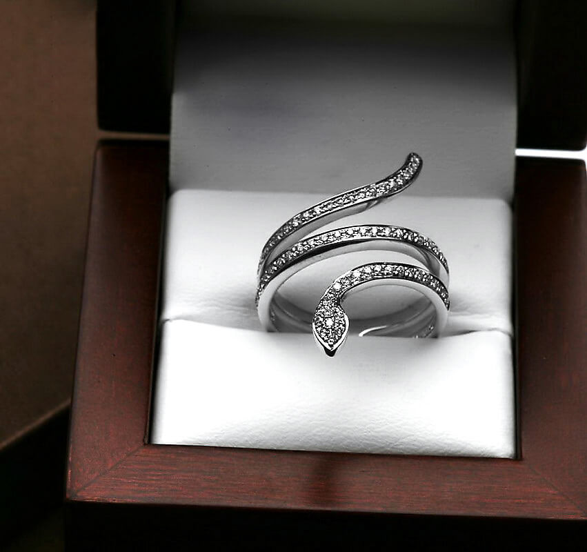 Eksklusiivne | sõrmus madu kujul teemantidega valges kullas 750