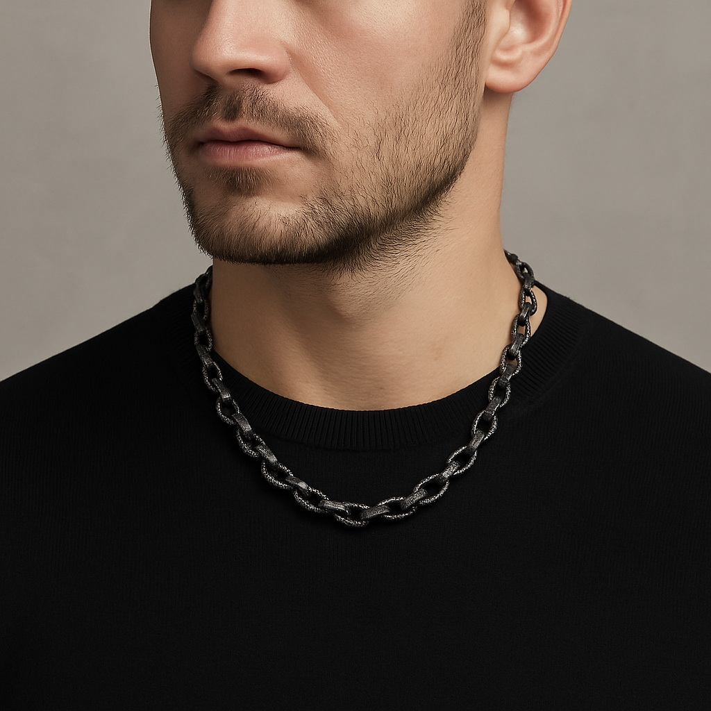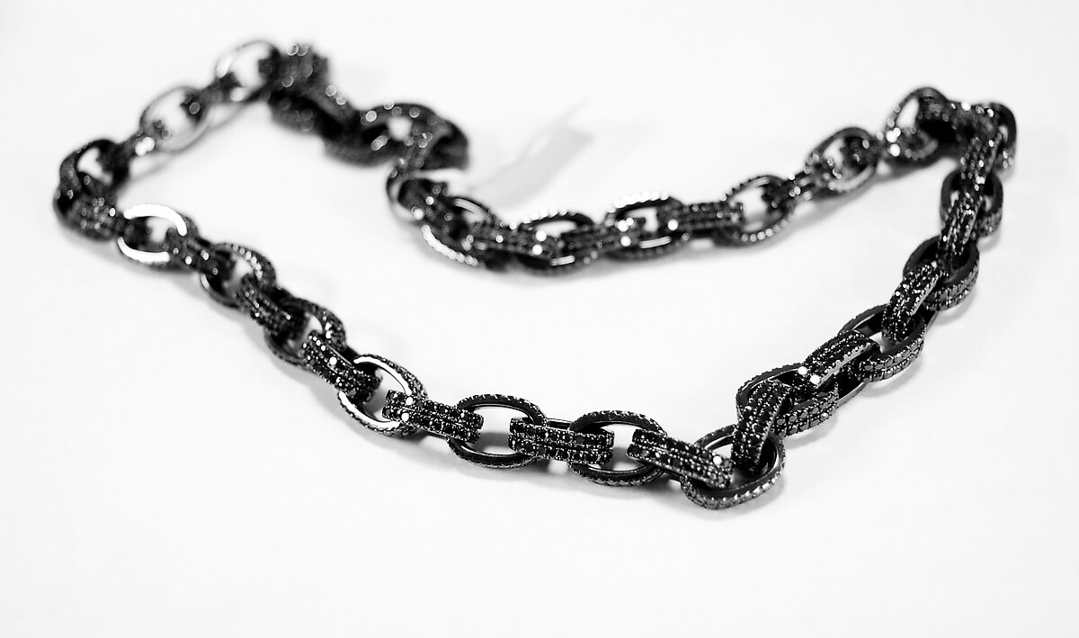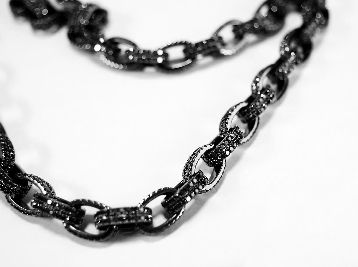 Eksklusiivne unisex kaelakee mustast kullast ja mustadest teemantitest