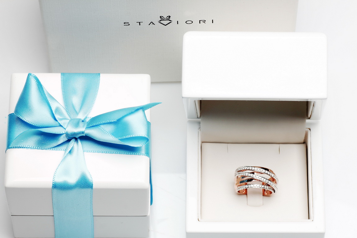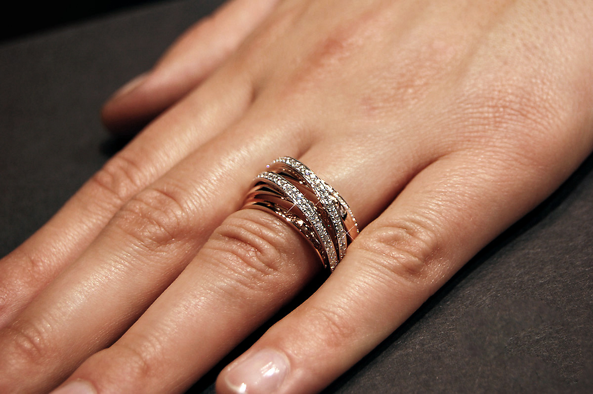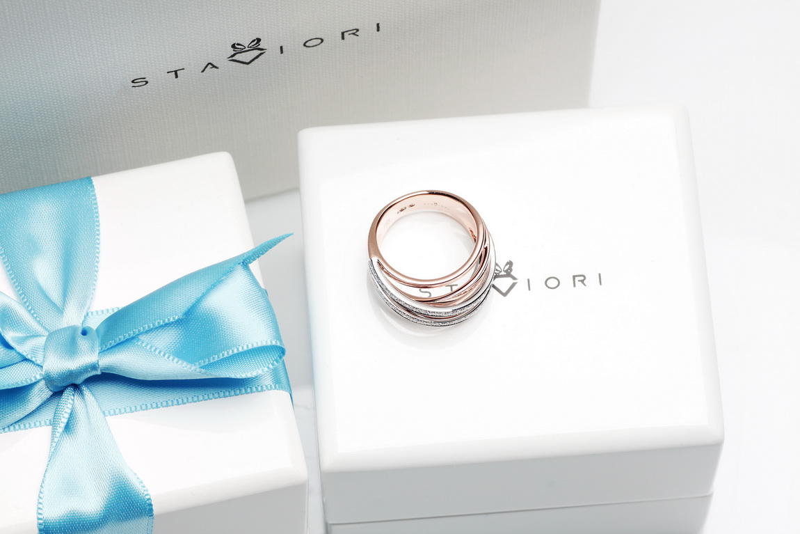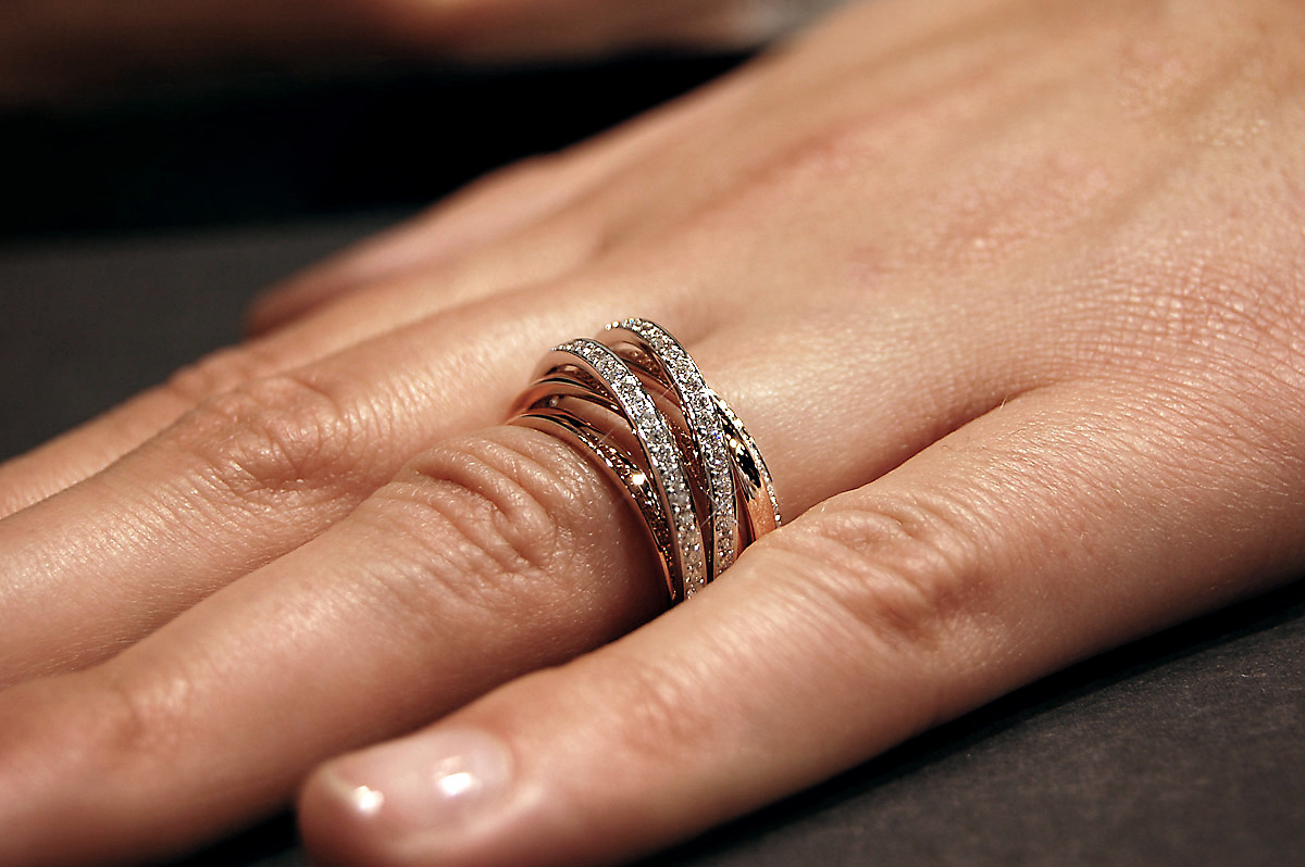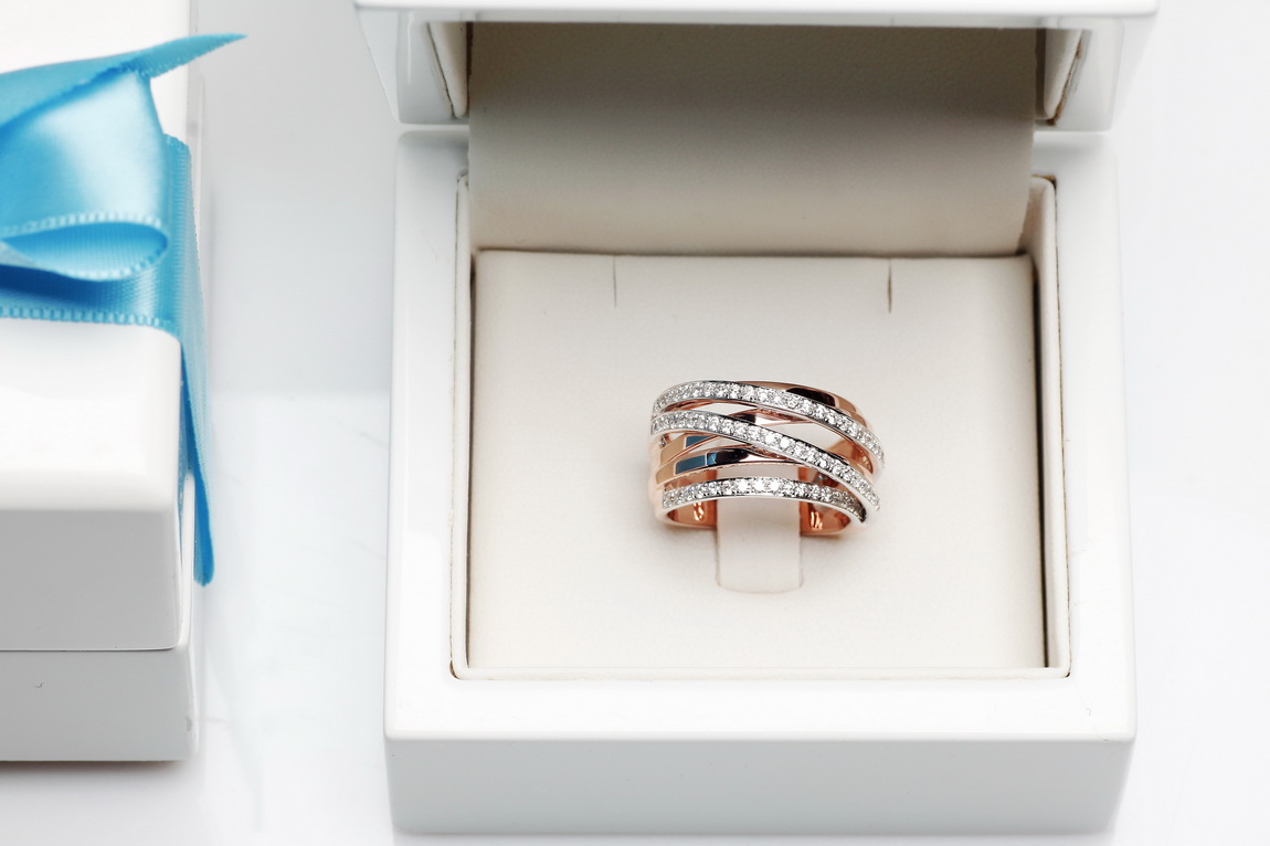 Huvitav sõrmus briljantide ja baguett-teemantitega