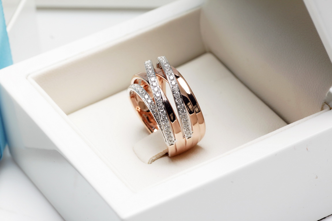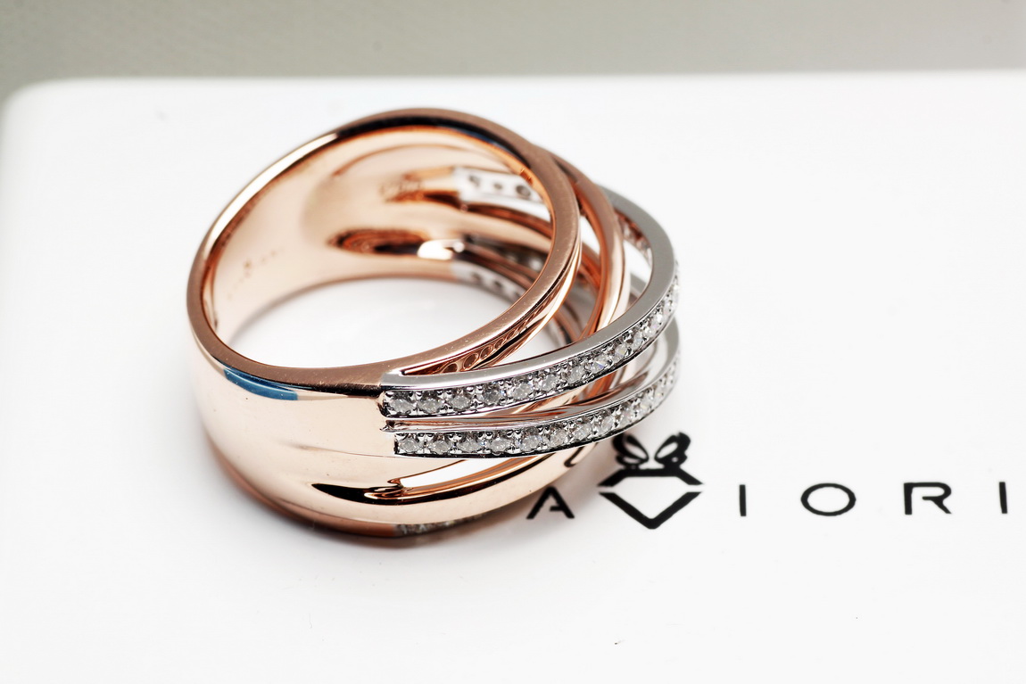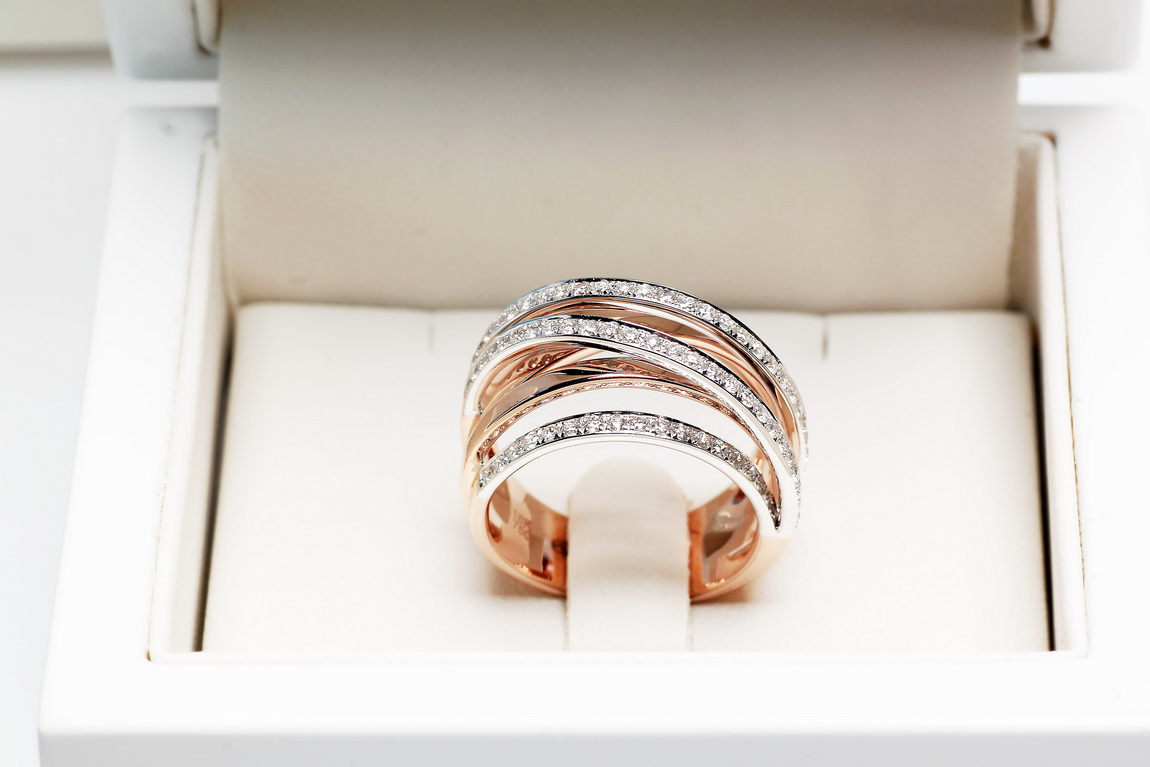 Eksklusiivne | väärikas lai sõrmus kahest kullavärvist 18-karaadisest kullast teemantitega