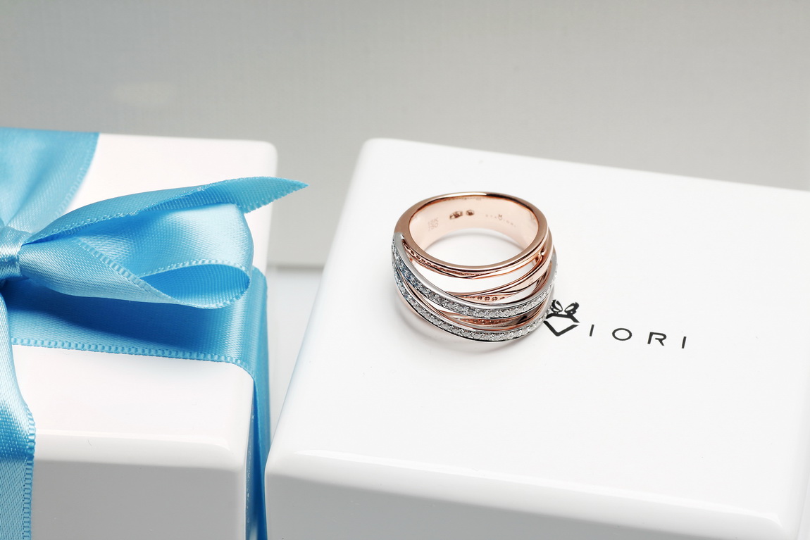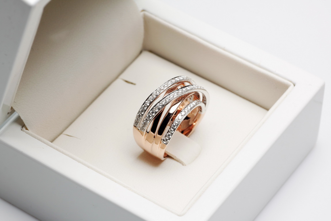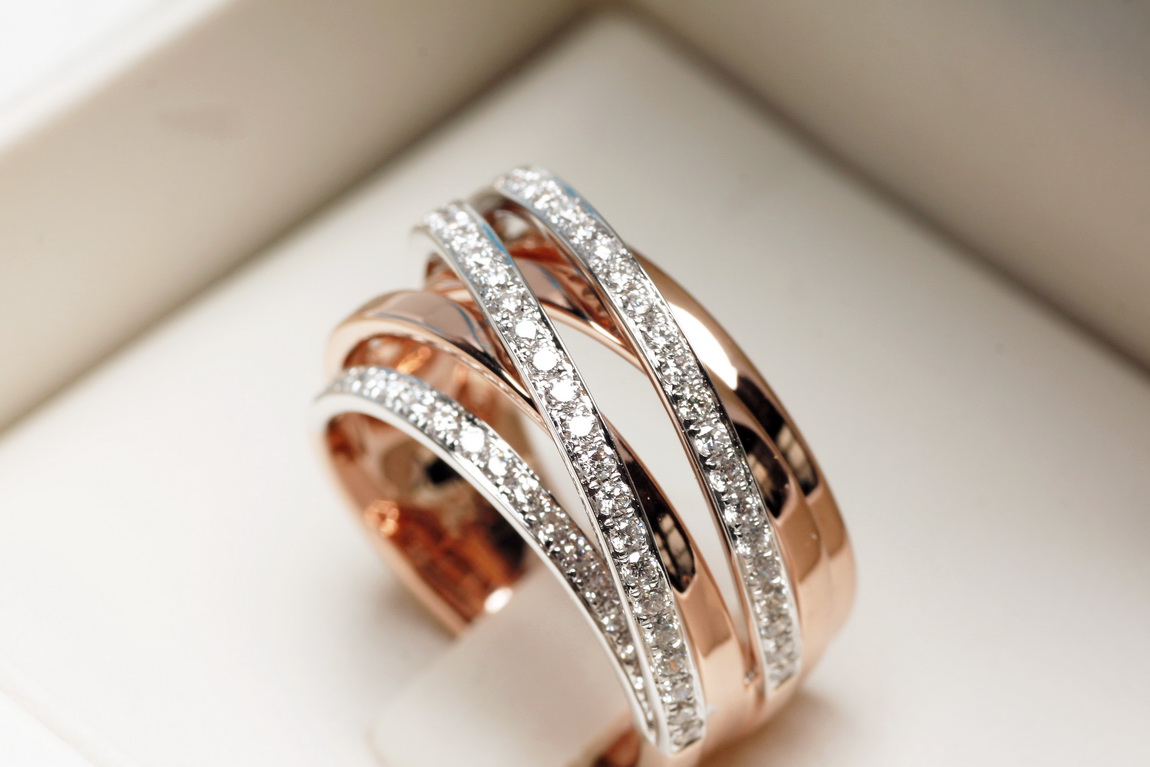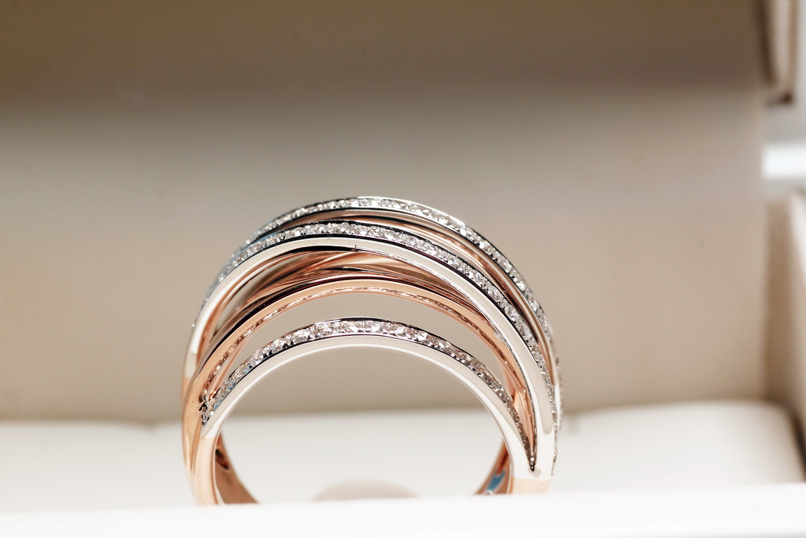 Eksklusiivne | väärikas lai sõrmus kahest kullavärvist 18-karaadisest kullast teemantitega