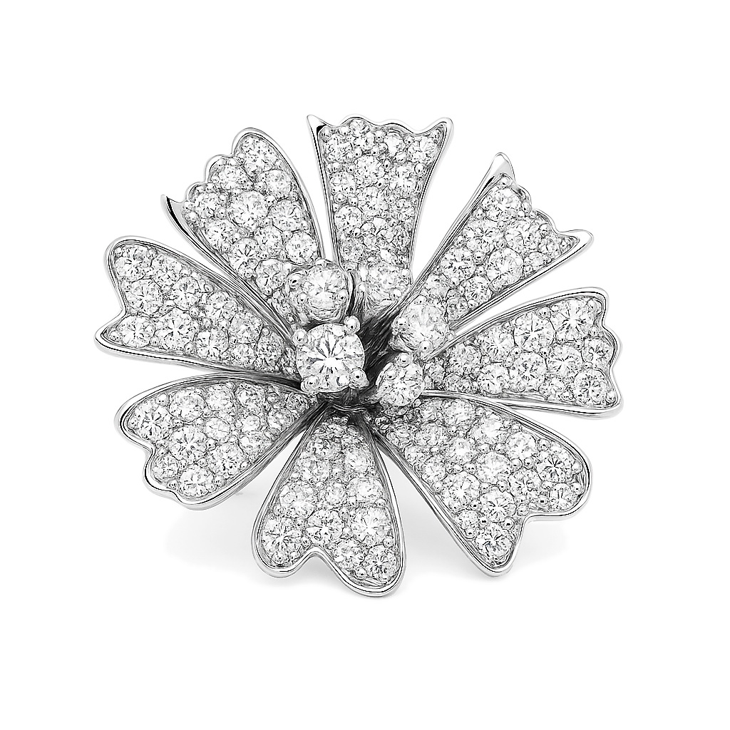 Eksklusiivne | Valge kullaga 750 sõrmus teemantitega lillekujuliselt