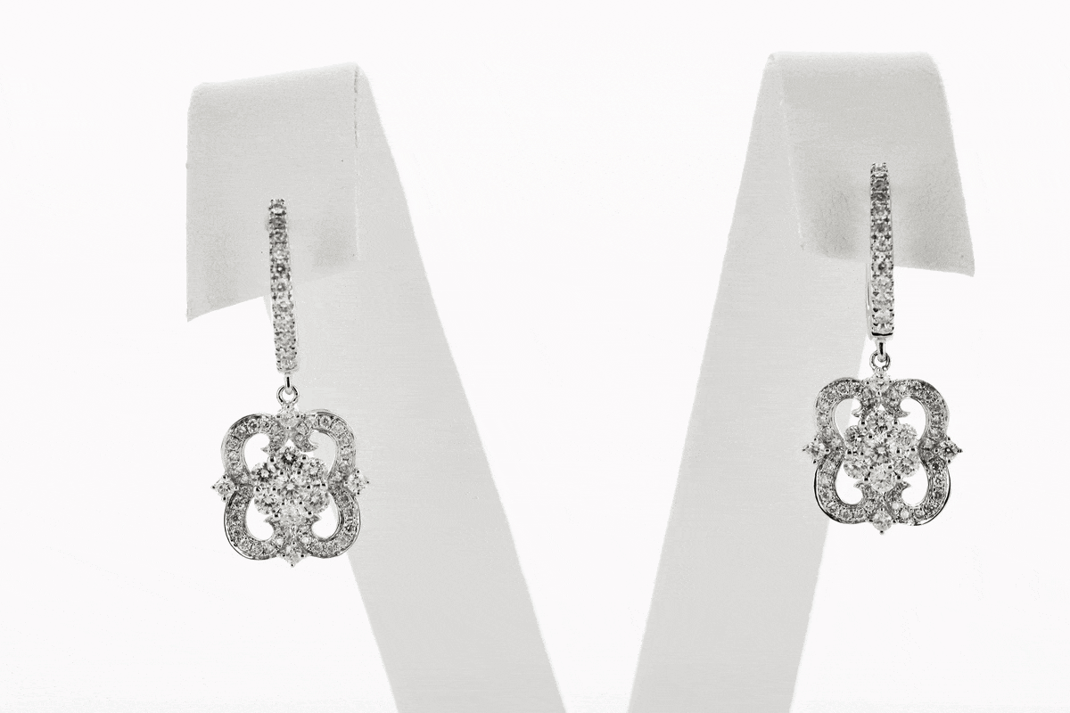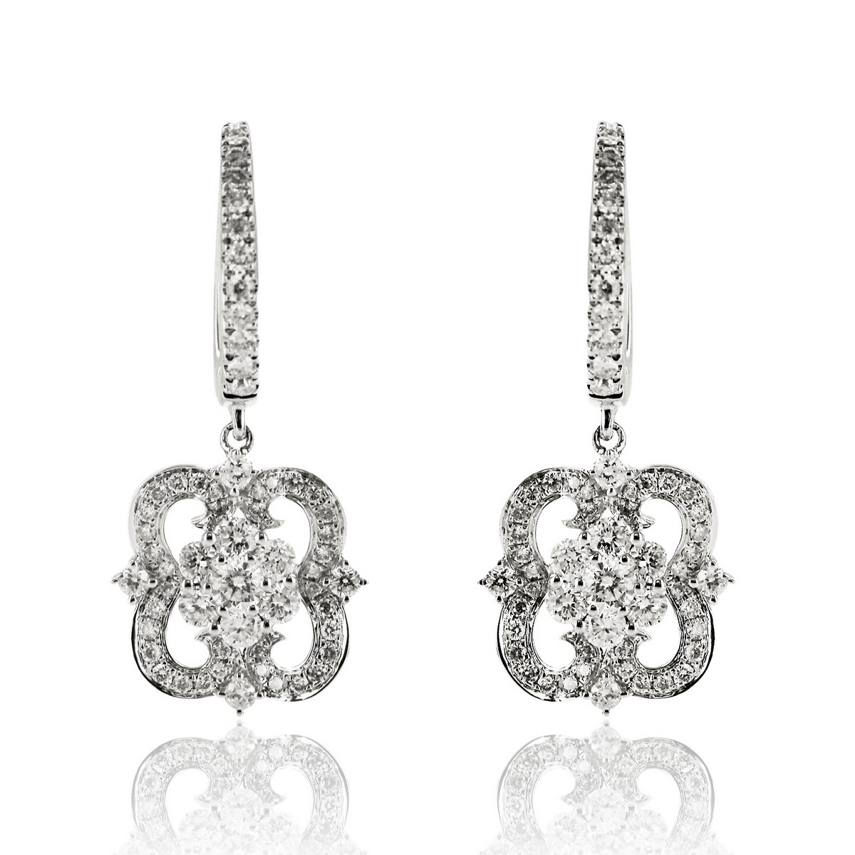 Eksklusiivsed art deco kõrvarõngad valgest kullast 750 ja briljantidega