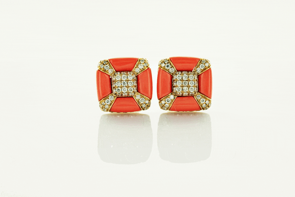 Eksklusiivsed kõrvarõngad 18k kollasest kullast, korall, briljandid