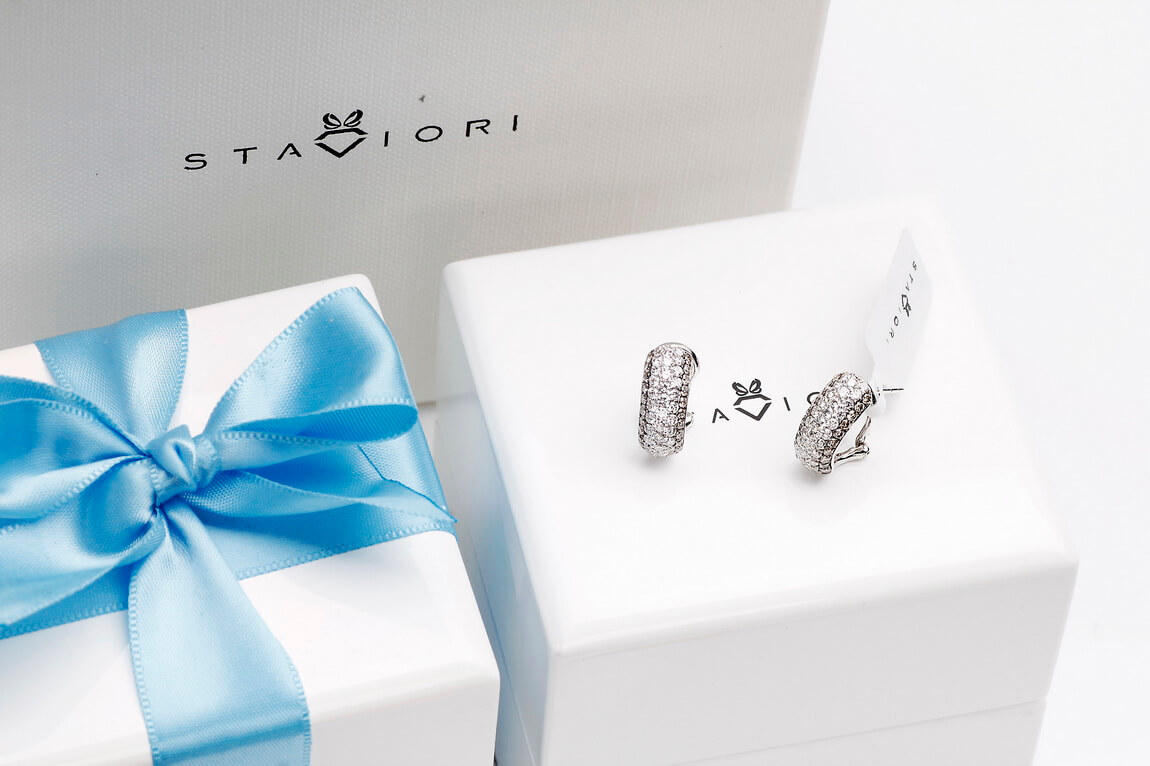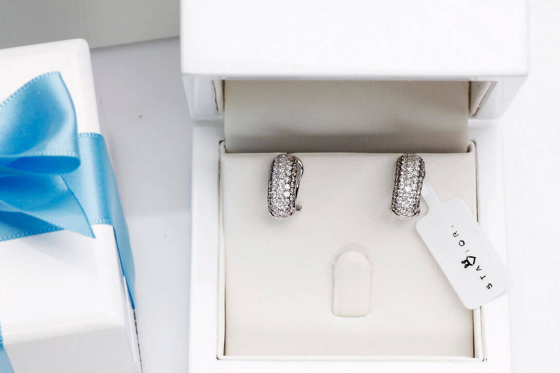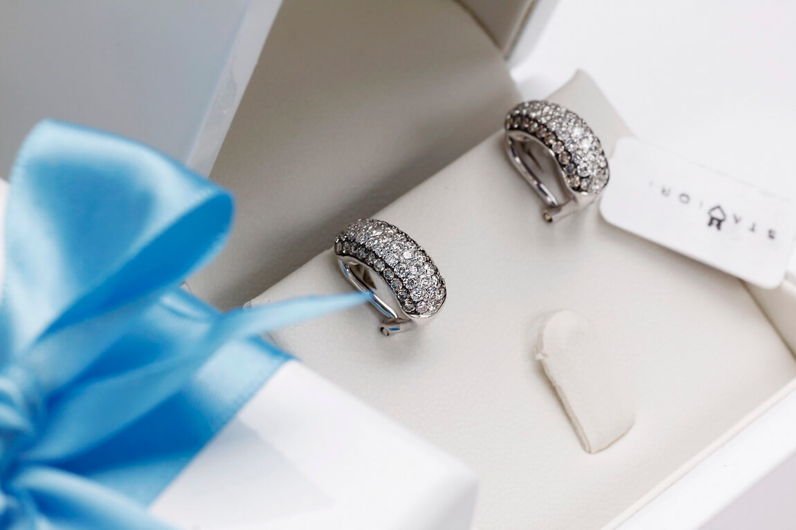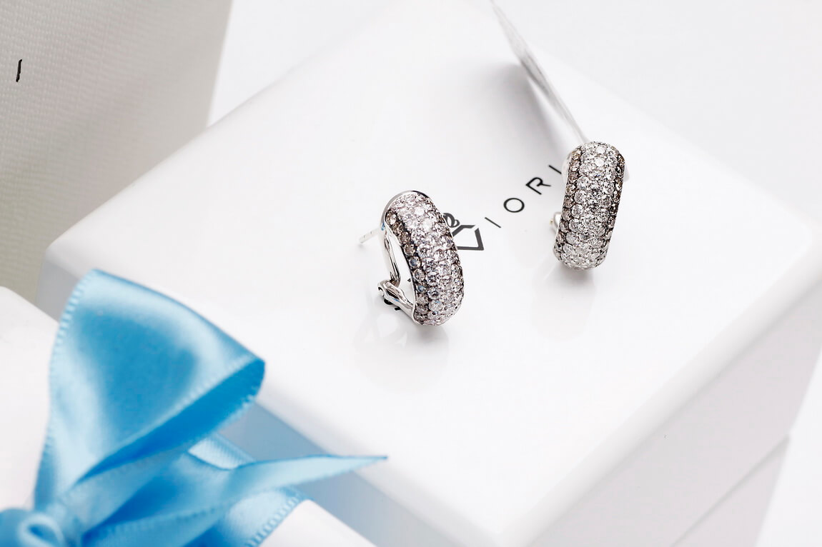 Eksklusiivsed | Kõrvarõngad valgest 18-karaadisest kullast valgete ja mustade teemantitega