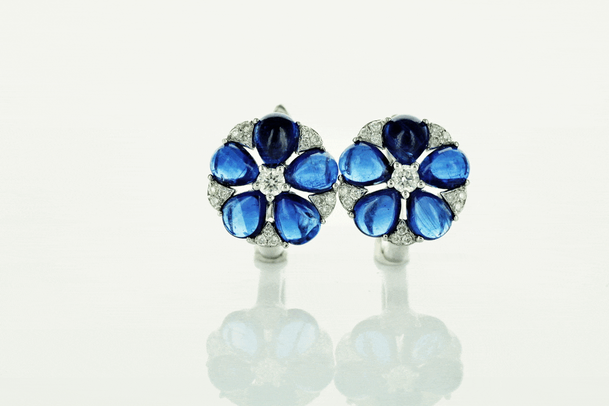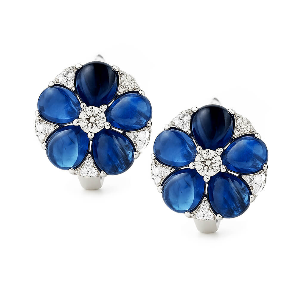 Eksklusiivsed kõrvarõngad valgest kullast 750, küaniitide ja teemantitega