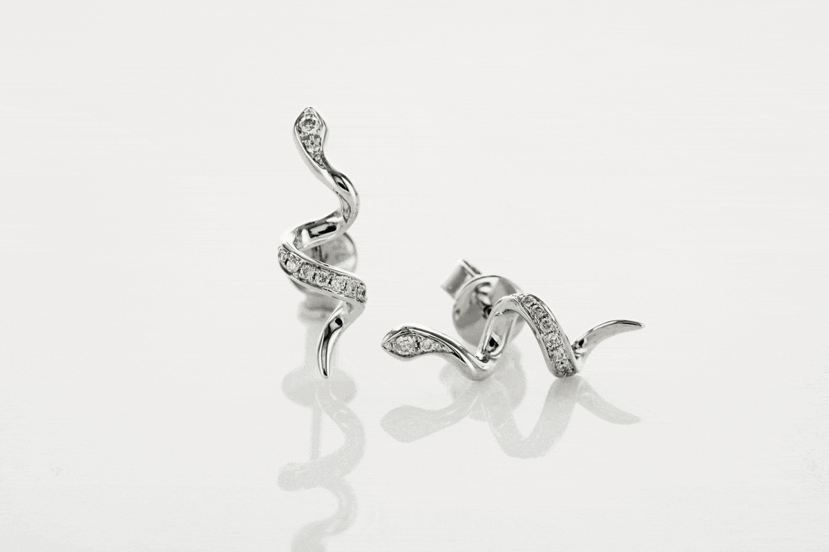 Eksklusiivsed | Madu-kujulised kõrvarõngad valgest kullast 750 teemantitega