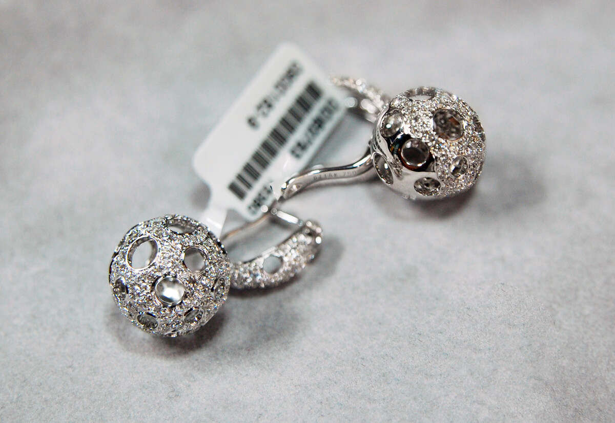 Eksklusiivsed rippuvad ažuursete briljantidega kõrvarõngad