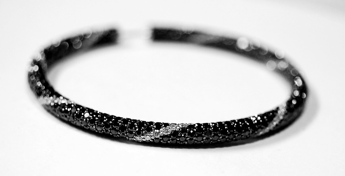 Eksklusiivsed valge kulla kõrvarõngad mustade teemantitega