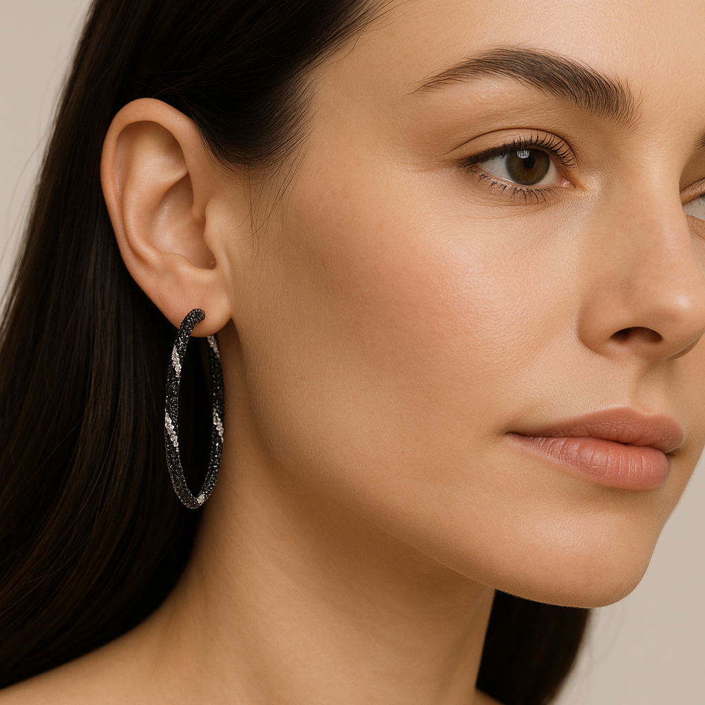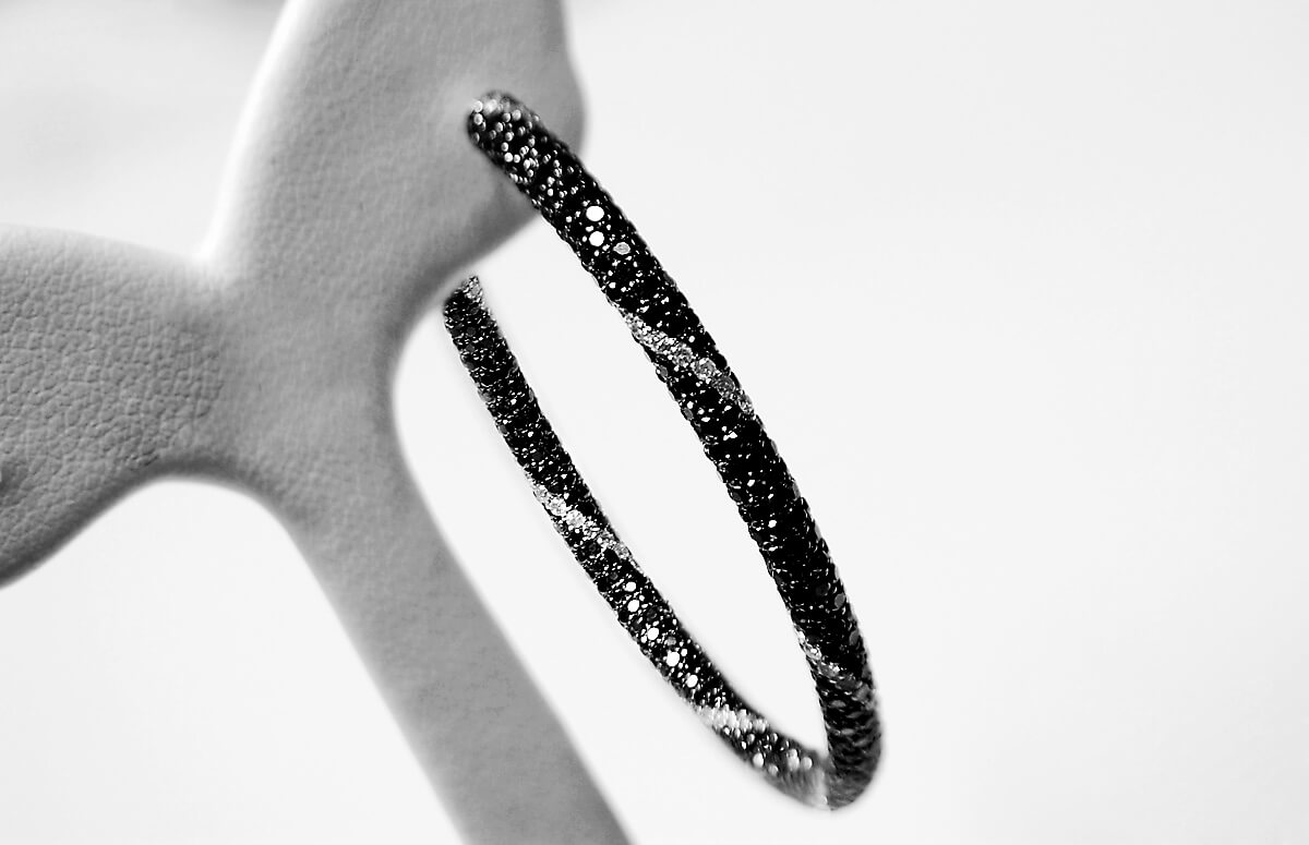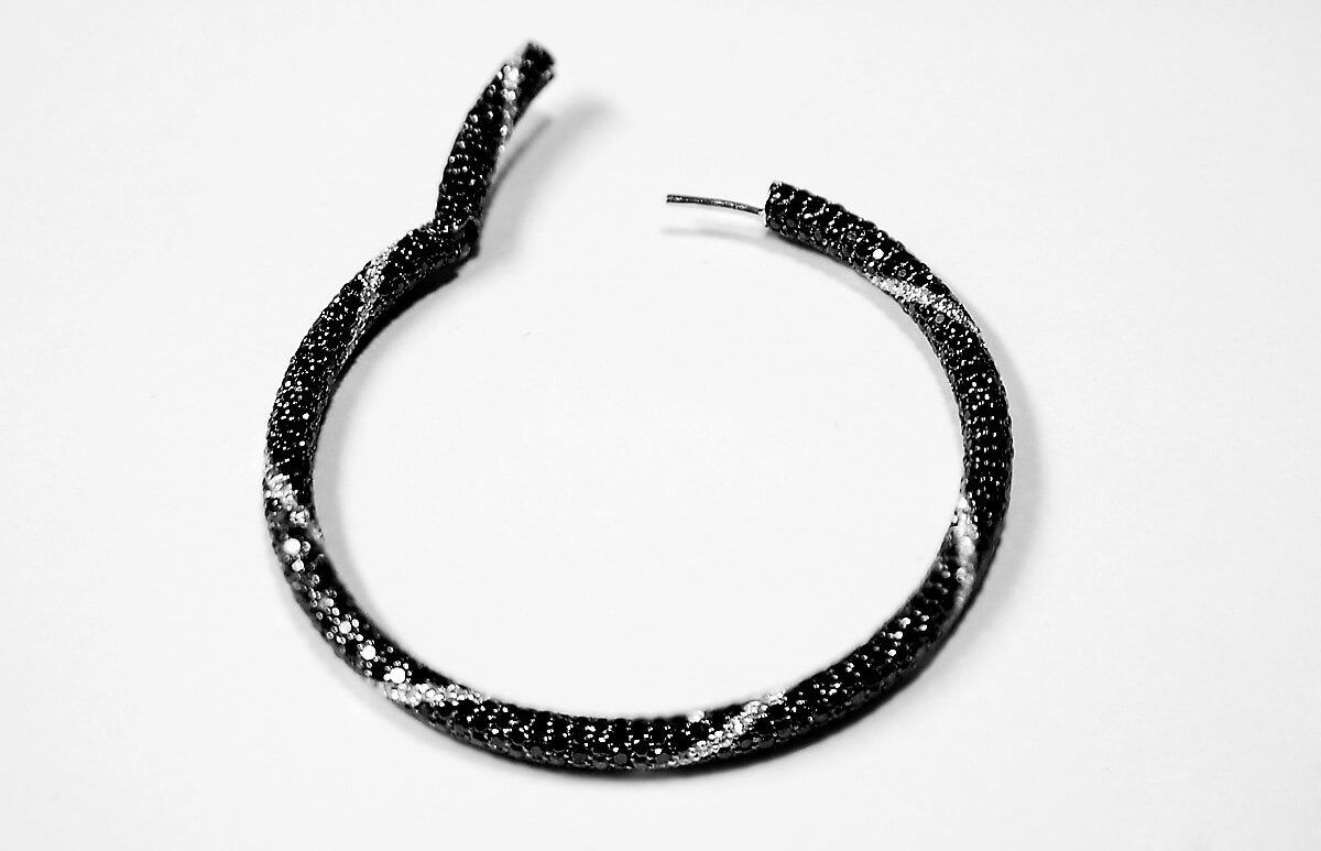 Eksklusiivsed suured kreool-kõrvarõngad mustade ja valgete teemantitega