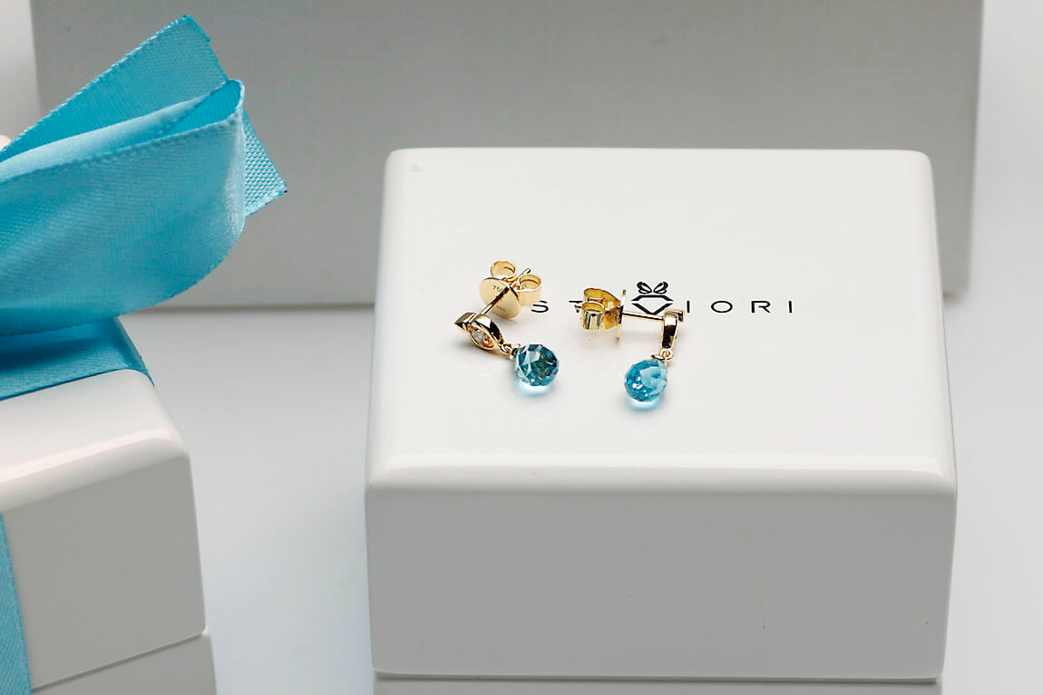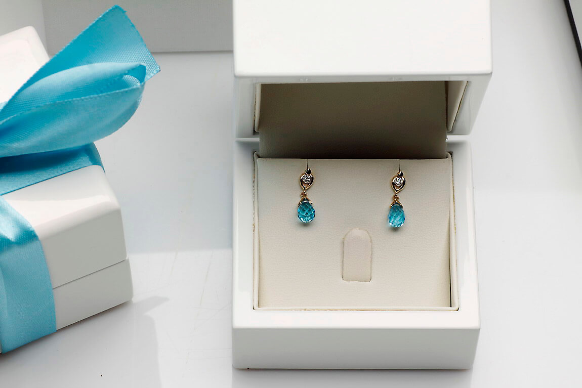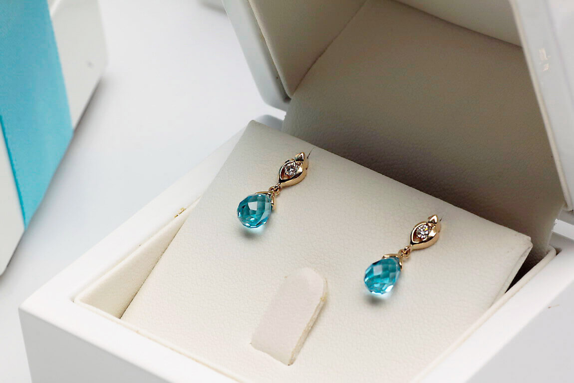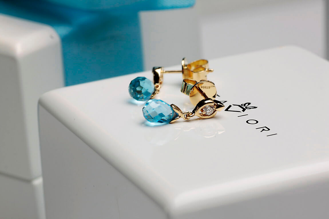 Eksklusiivsed teemantite ja topaasiga kõrvarõngad
