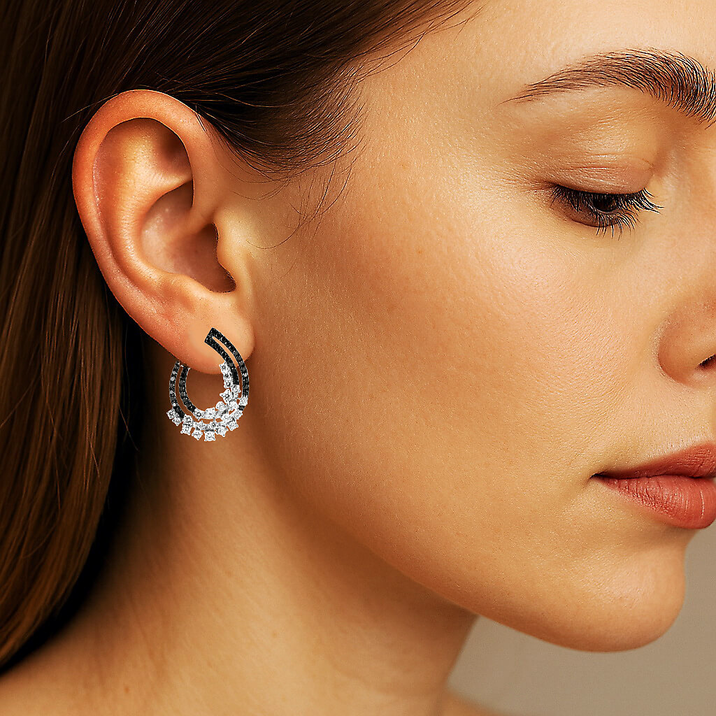Eksklusiivsed | Väga omanäolised kõrvarõngad valgest kullast mustade ja valgete teemantitega