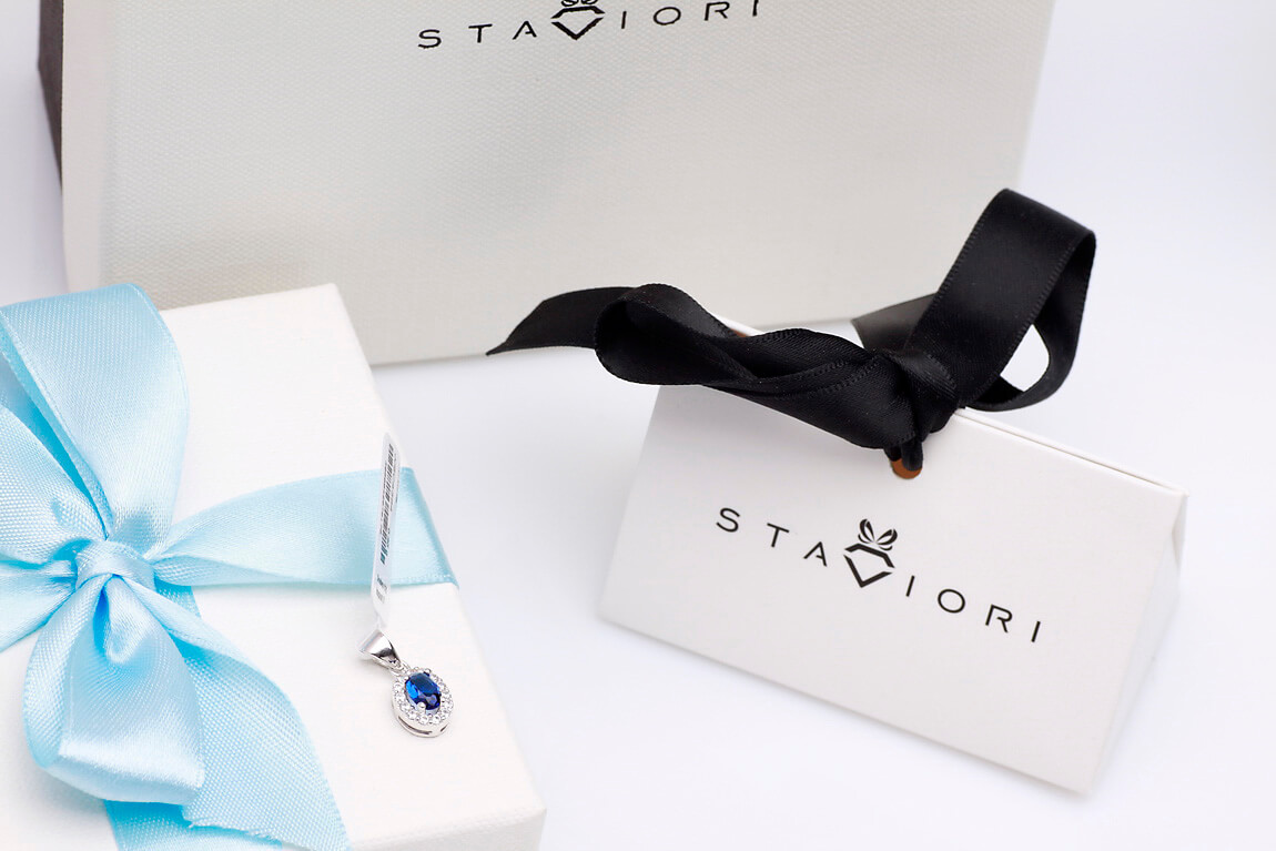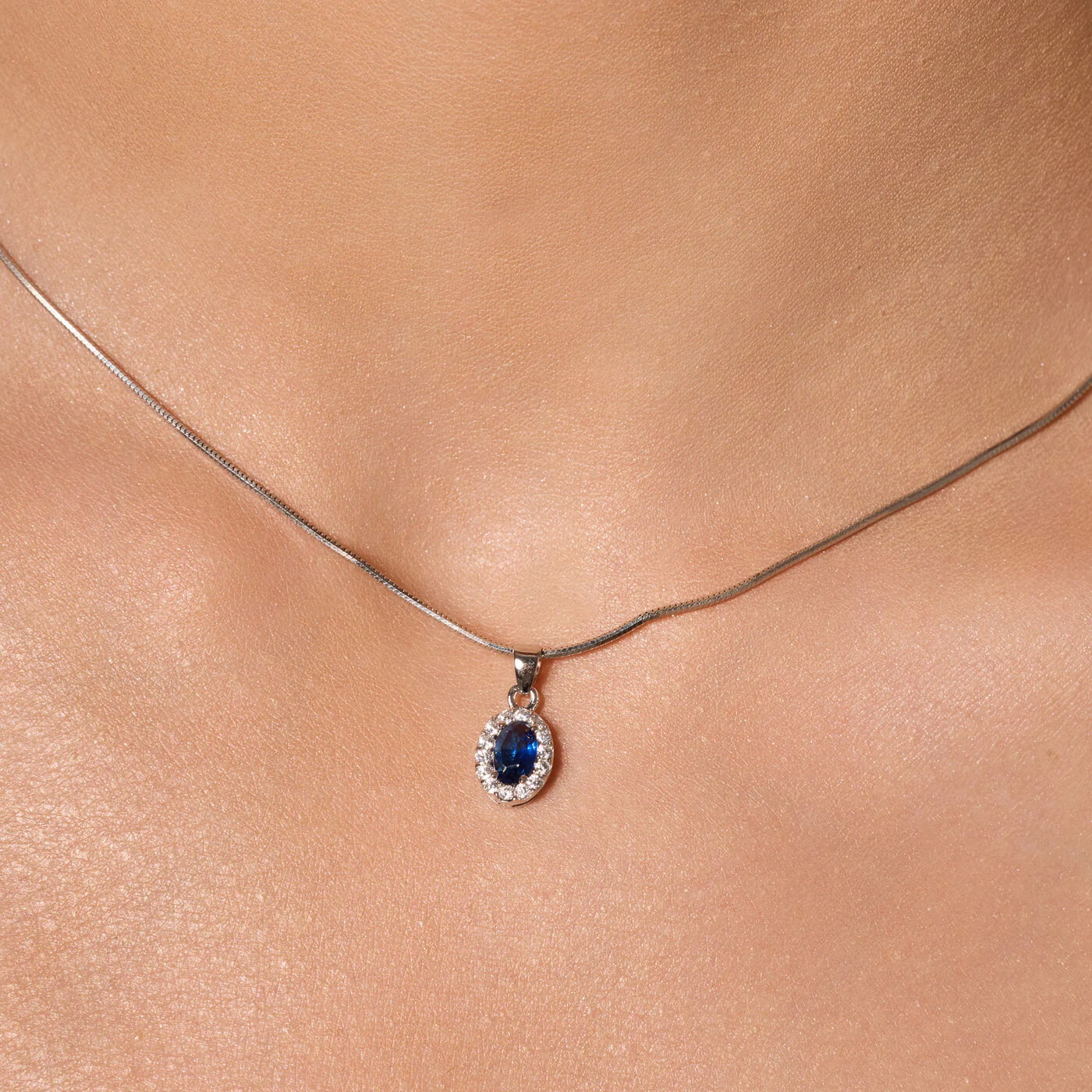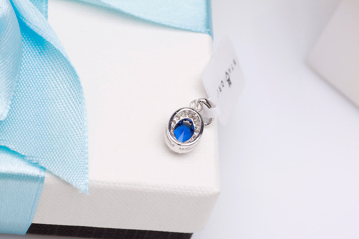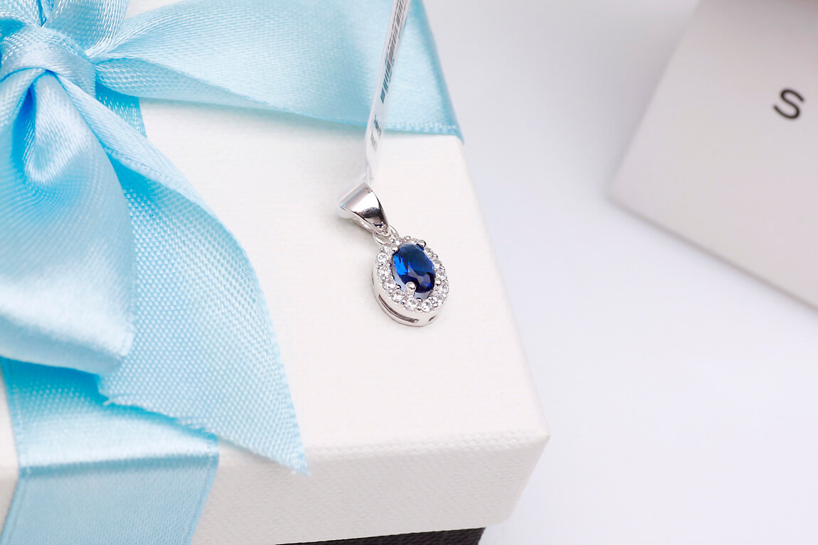 Hõbedane ripats sinise ja valgete tsirkoonidega