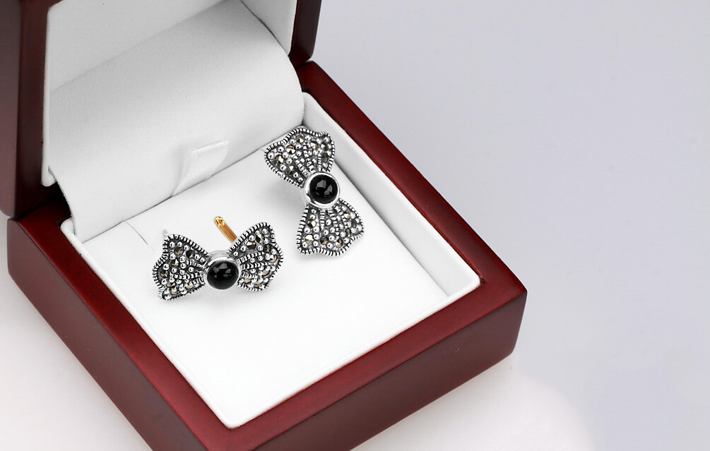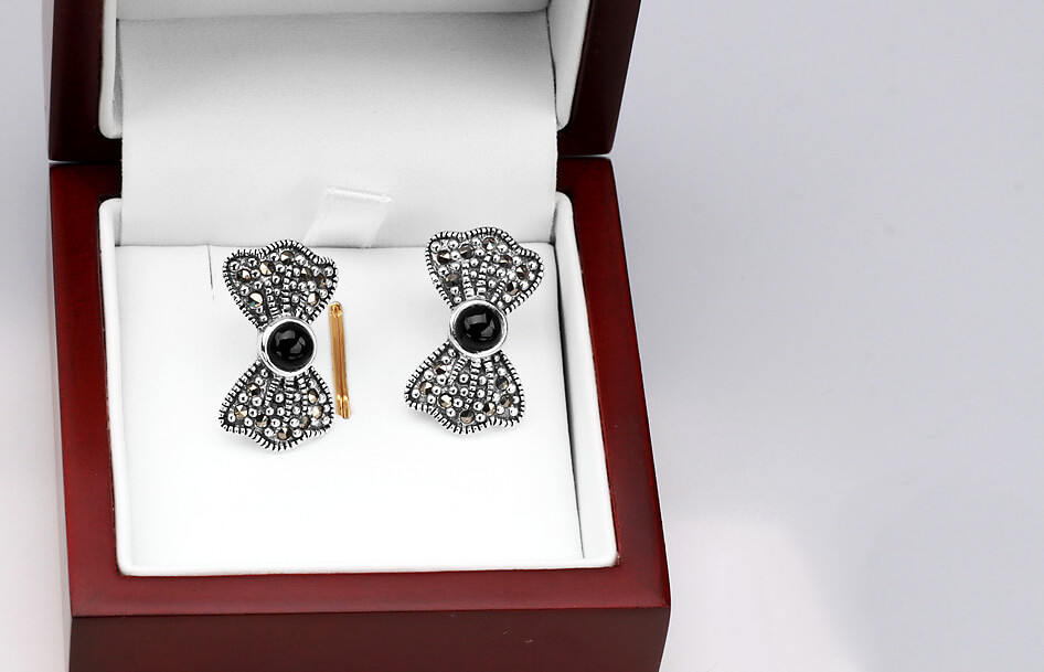 Hõbedased kõrvarõngad lehvikujulised markasiitide ja onühhisega