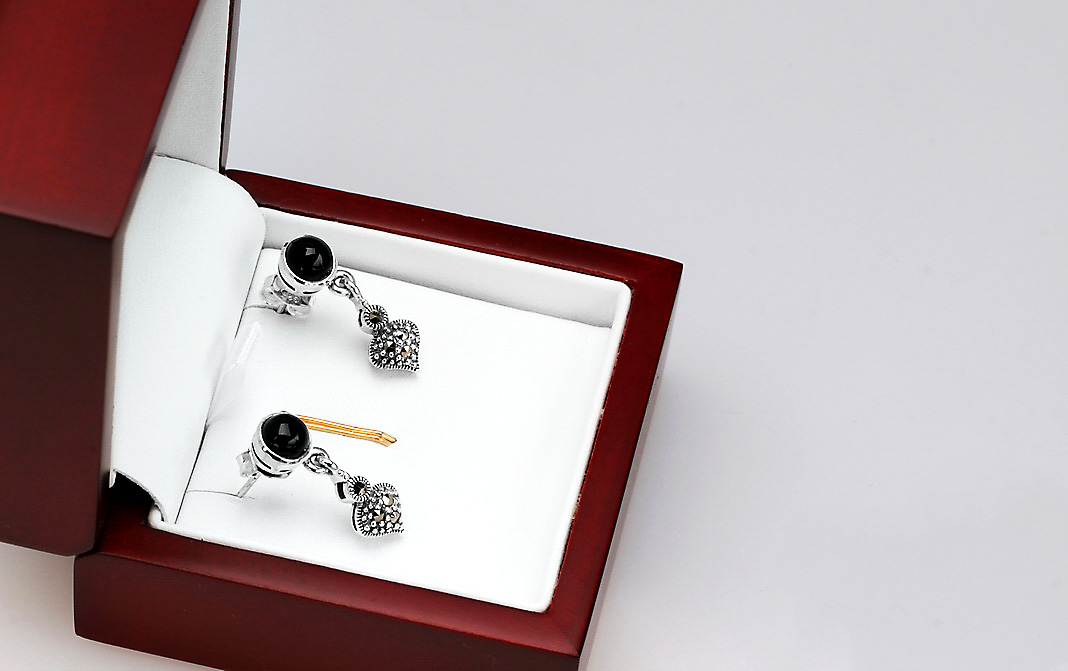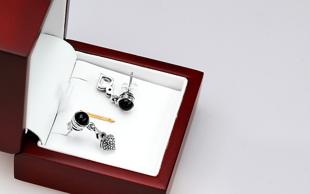Hõbedased kõrvarõngad markasiitide ja onyksiga – KDM2877
