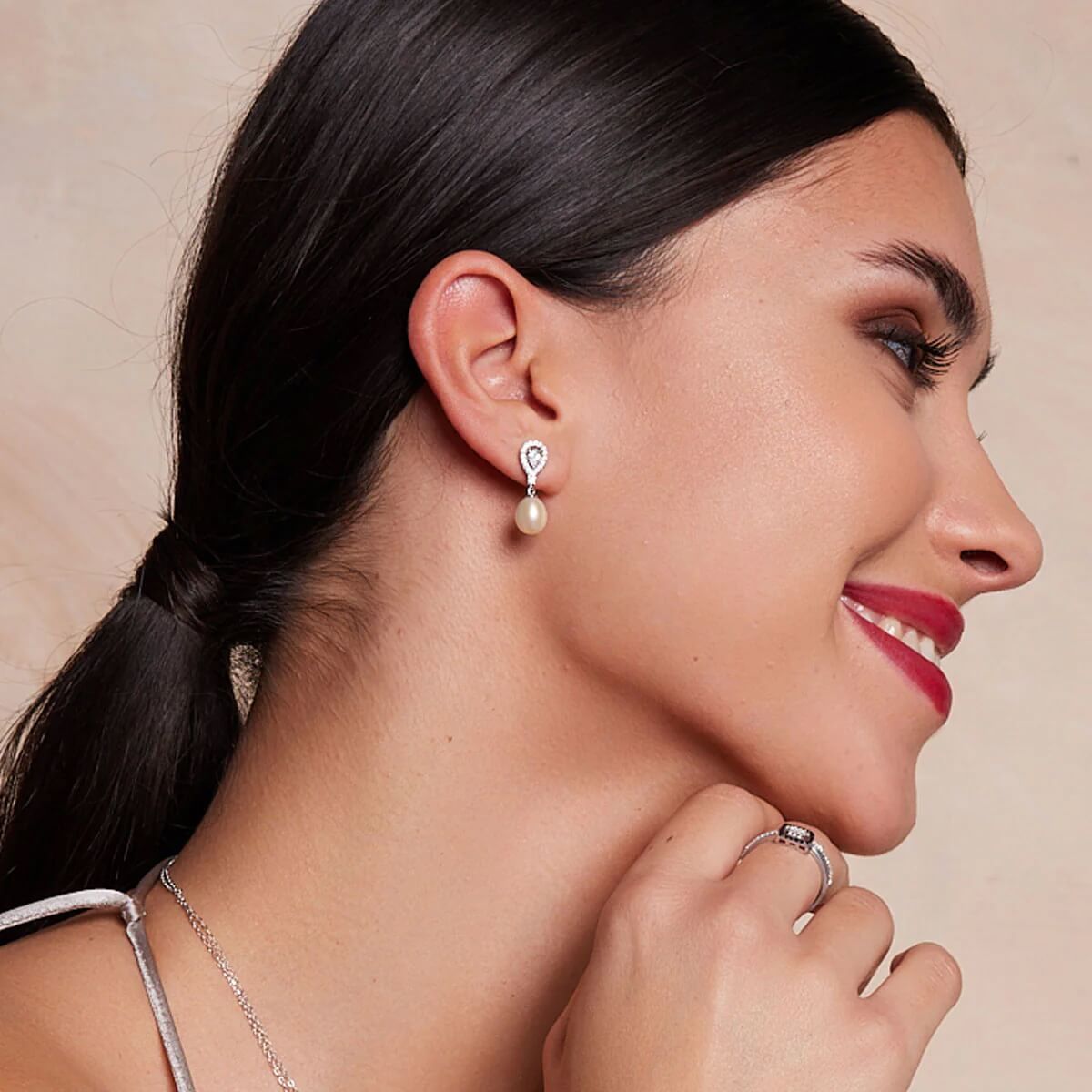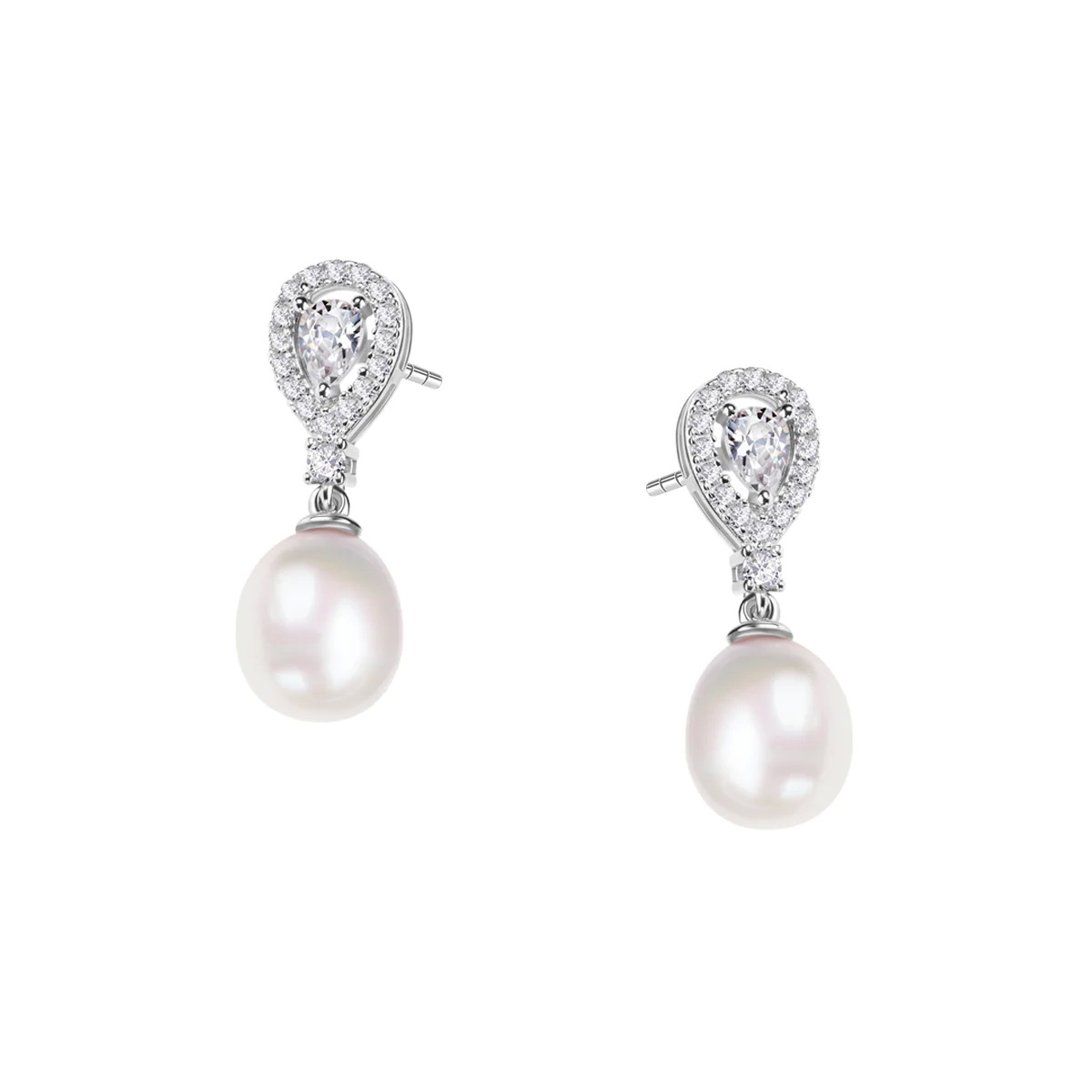 Hõbedased kõrvarõngad pärli ja tsirkoonidega – KSN6440